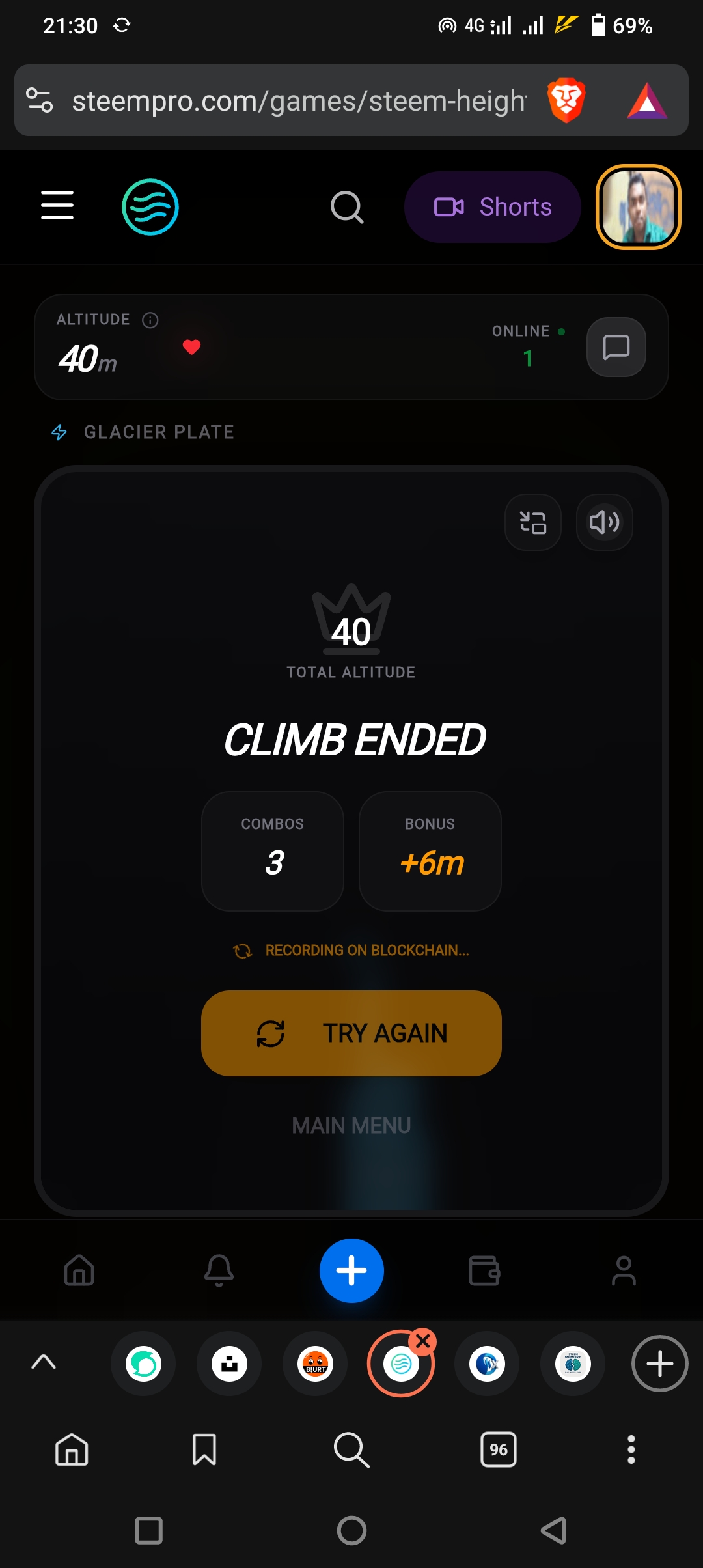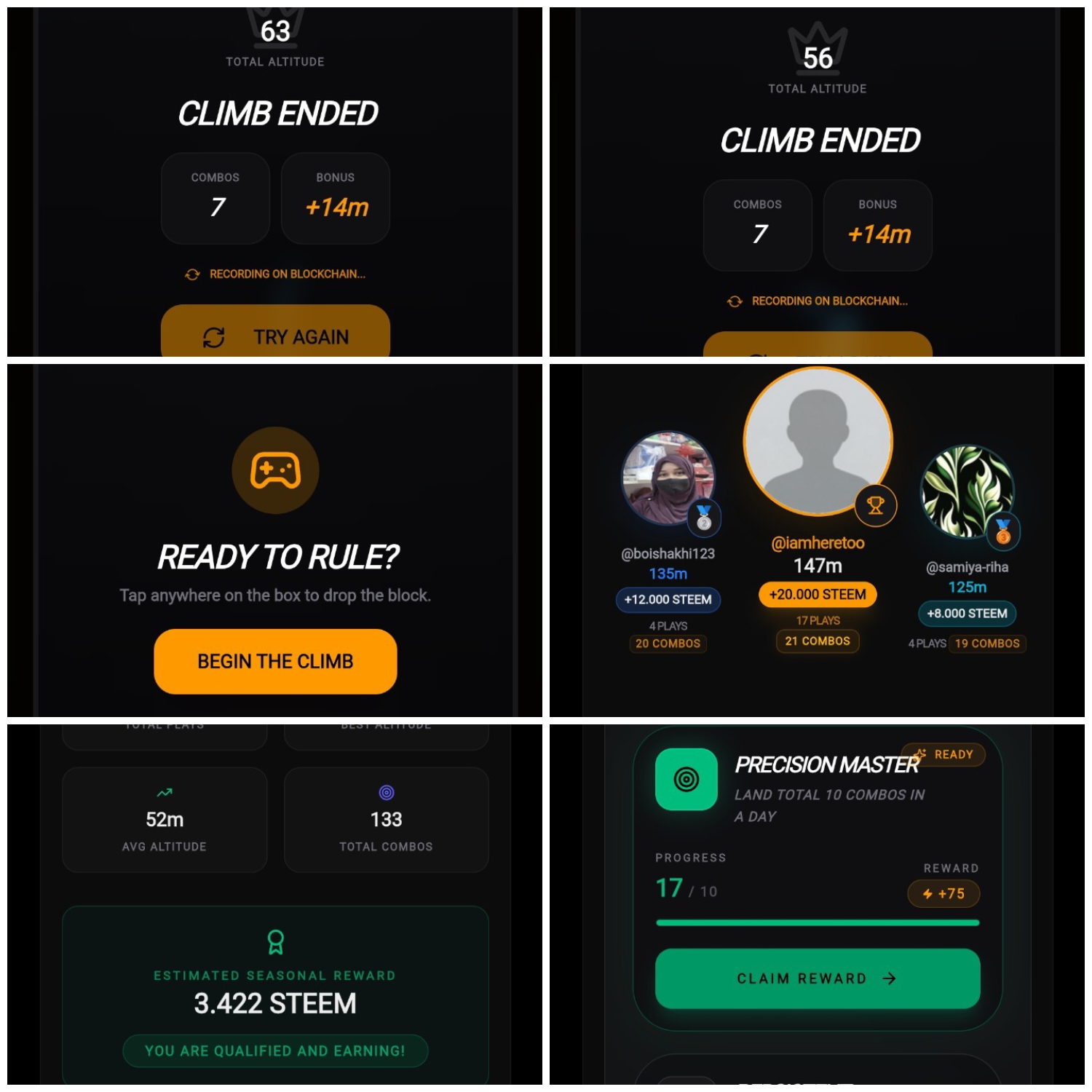 How are you all, I hope everyone is well. One of my favorite things to do on the Steemheights platform is playing the Steemheights game. Like every day, today I sat down to play the game with great interest. I had set a big goal in my mind—today, I will break all the previous records and climb much higher. But at the end of the day, reality is not always as I wish.