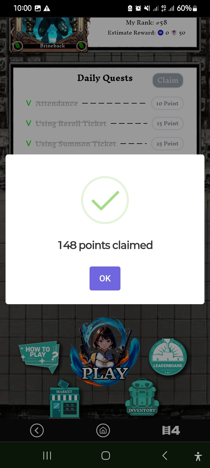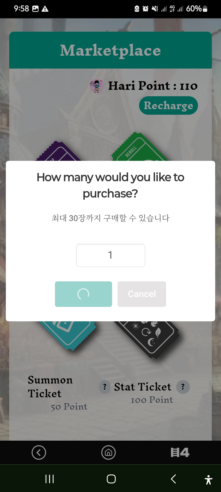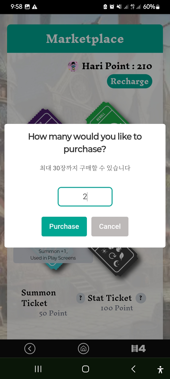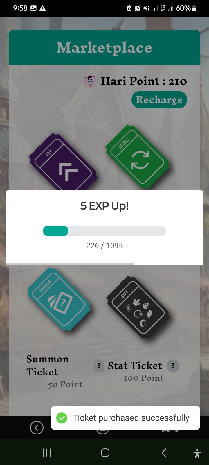 Now I went to the market option. After going to the market option, I purchased two summon tickets. Along with this, I purchased an exp ticket and a reroll ticket. After that, I started my game activities again.