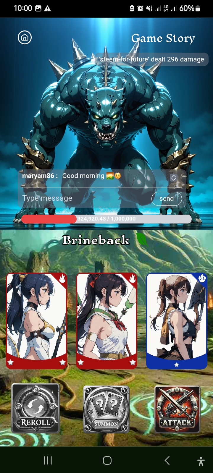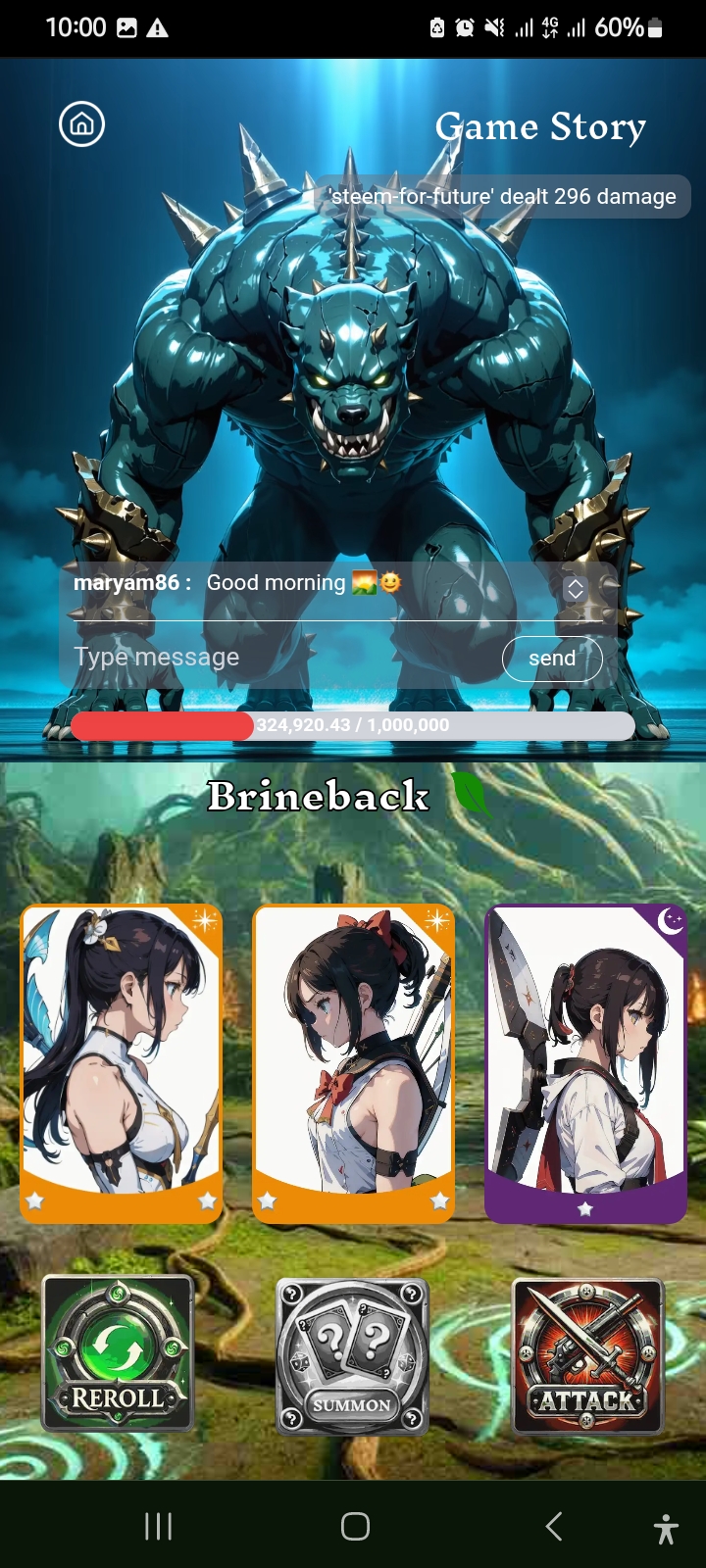 Then I finally attacked the third card. I gained 296 damage by attacking the second card.