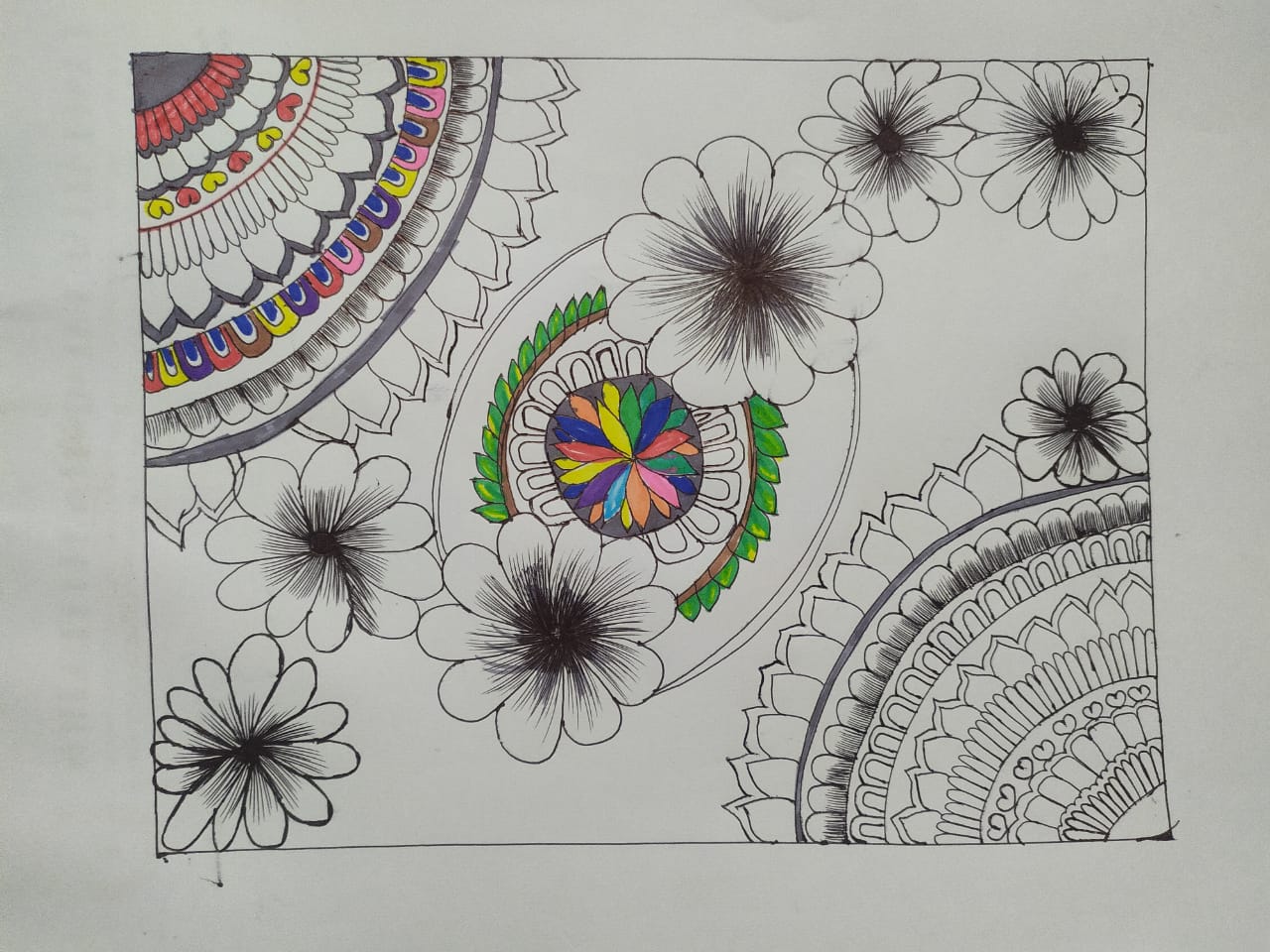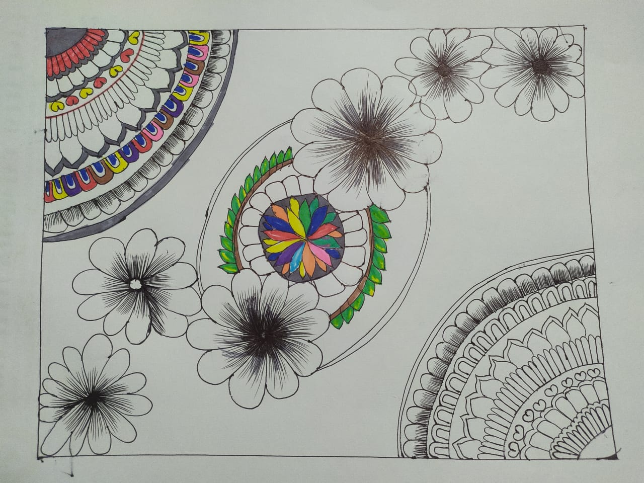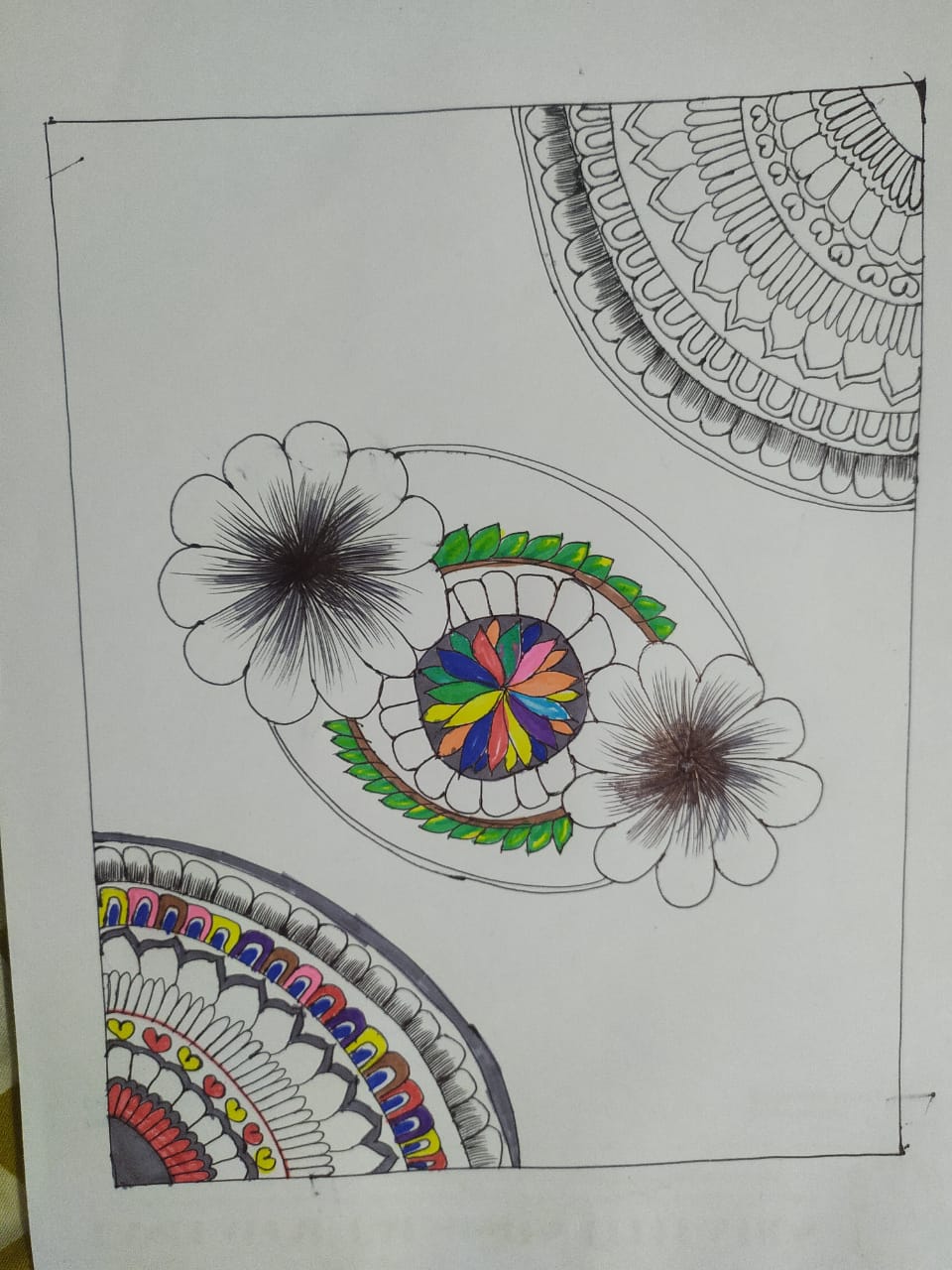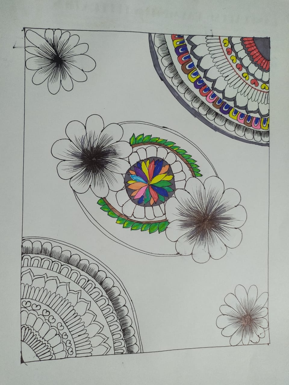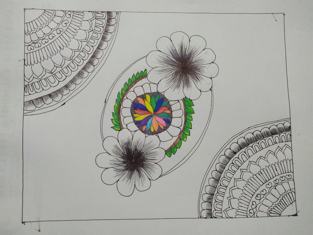 আর্ট করতে শুরুতে প্রয়োজন ভালো ও ফ্রেশ একটা মাইন্ড যা আপনাকে সুন্দর ও আকর্ষণীয় একটি আর্ট তৈরি করতে সাহায্য করবে। আসলে এই বিষয়টা শুধু আর্ট এর ক্ষেত্রে না বরং সবকিছুর ক্ষেত্রে। ভালো মাইন্ড ও ফুরফুরা মেজাজে থাকলে যেকোনো কিছু খুব সুন্দর ও সহজ ভাবে তৈরি করা সম্ভব। তবে তখন কি ভাবে কার মন খারাপ হয়ে যায় সেটা কেউ বলতে পারে না। তাই ফুরফুরা মনের ভাব প্রকাশ করতে বসে গেলাম আর্ট করতে। একটা না দুইটা না তিন টা আর্ট একেবারেই করে নিলাম। আজকে আমি কলম ও রঙিন পেন্সিল ব্যবহার করে সুন্দর একটি রঙীন ম্যান্ডেলা আর্ট করে আপনাদের সাথে উপস্থাপন করলাম।