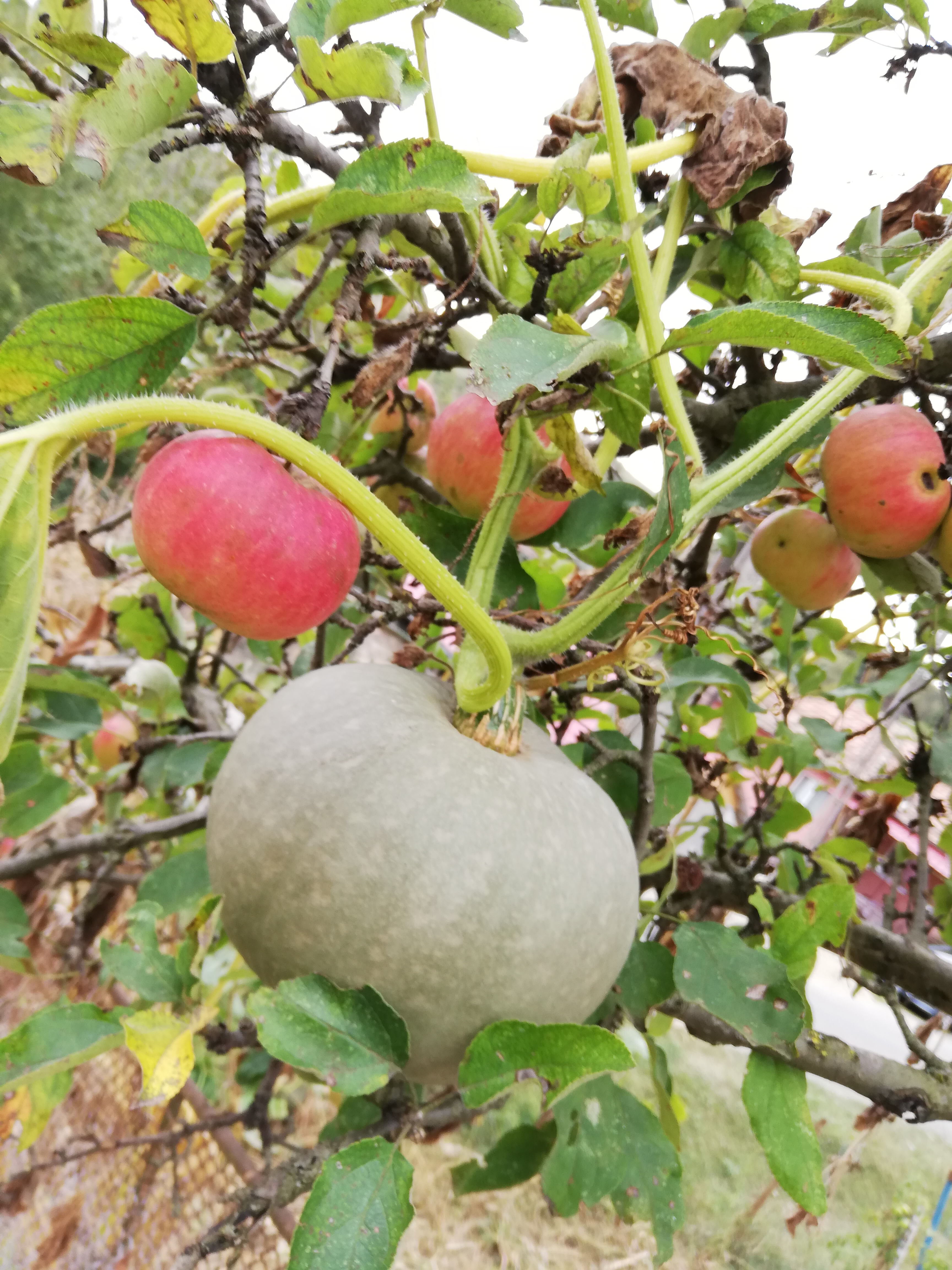 Strange pumpkin ❗❗❗🎃cristian07 (53)in #colorchallenge • 8 years ago I was visiting grandparents and walking through the yard I noticed a very strange thing, A pumpkin grew up in a apple I was amazed because I had never met such a thing. #food #photography #photo #life