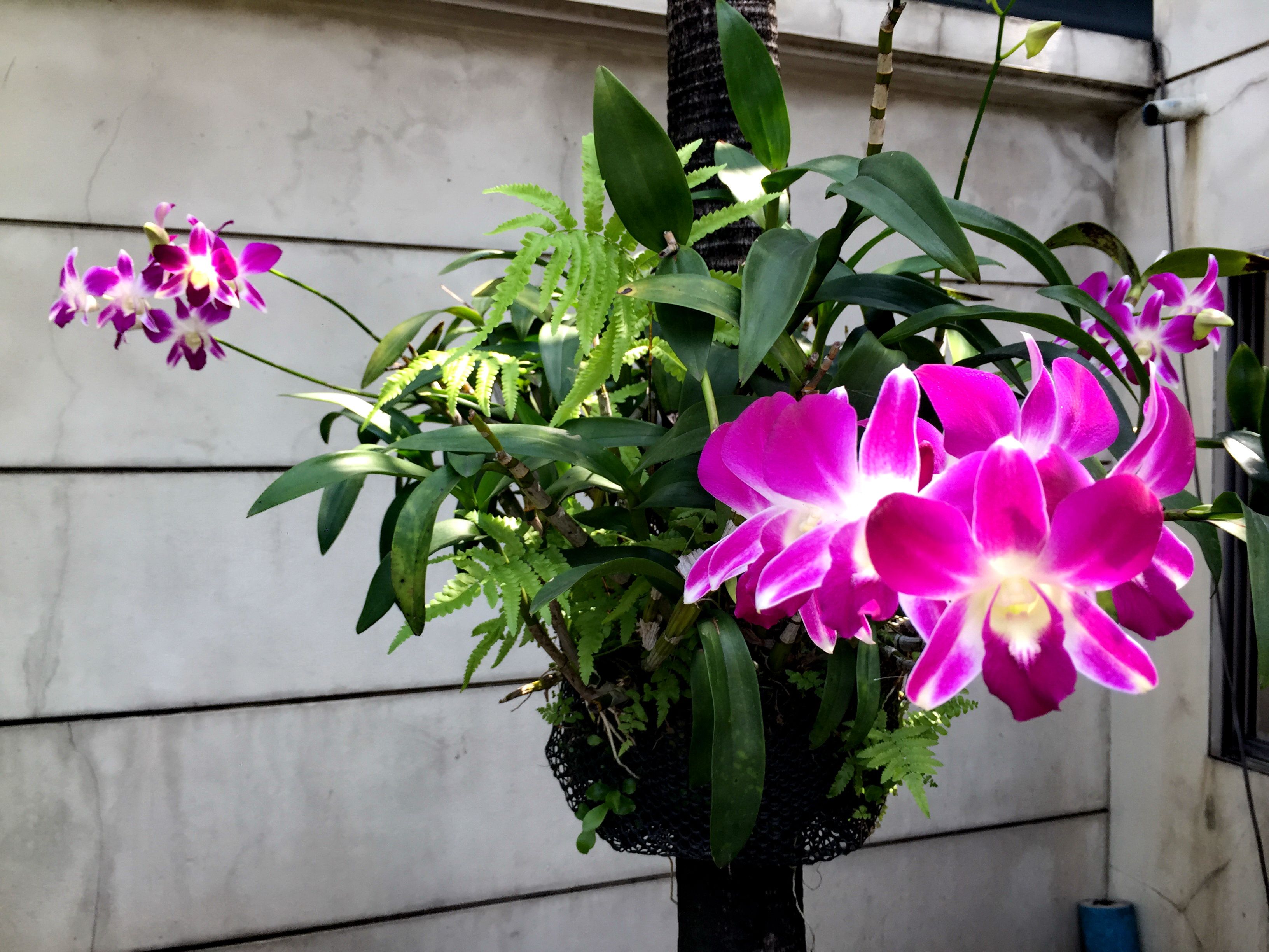 I just love walking the streets of Bangkok you will always find something interesting to look at and photograph as with this beautiful basket of orchids just hanging of a pine tree truck out front of a office building very colorful and at full bloom. Orchids are so elegant and a true queen flower.
