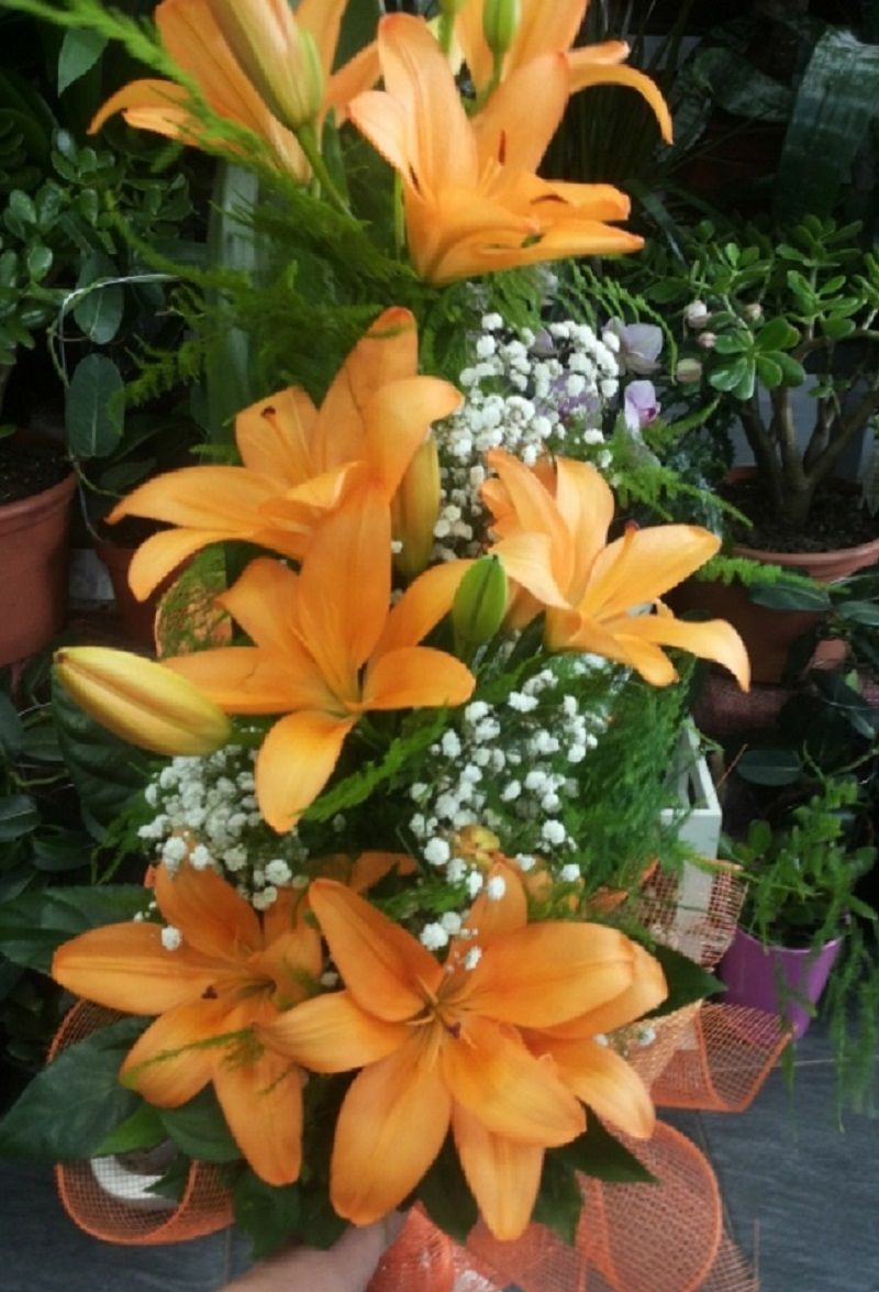 # Color Callenge TuesdayOrange🌻 # "Buquet of 3 lilies with greenery decoration "