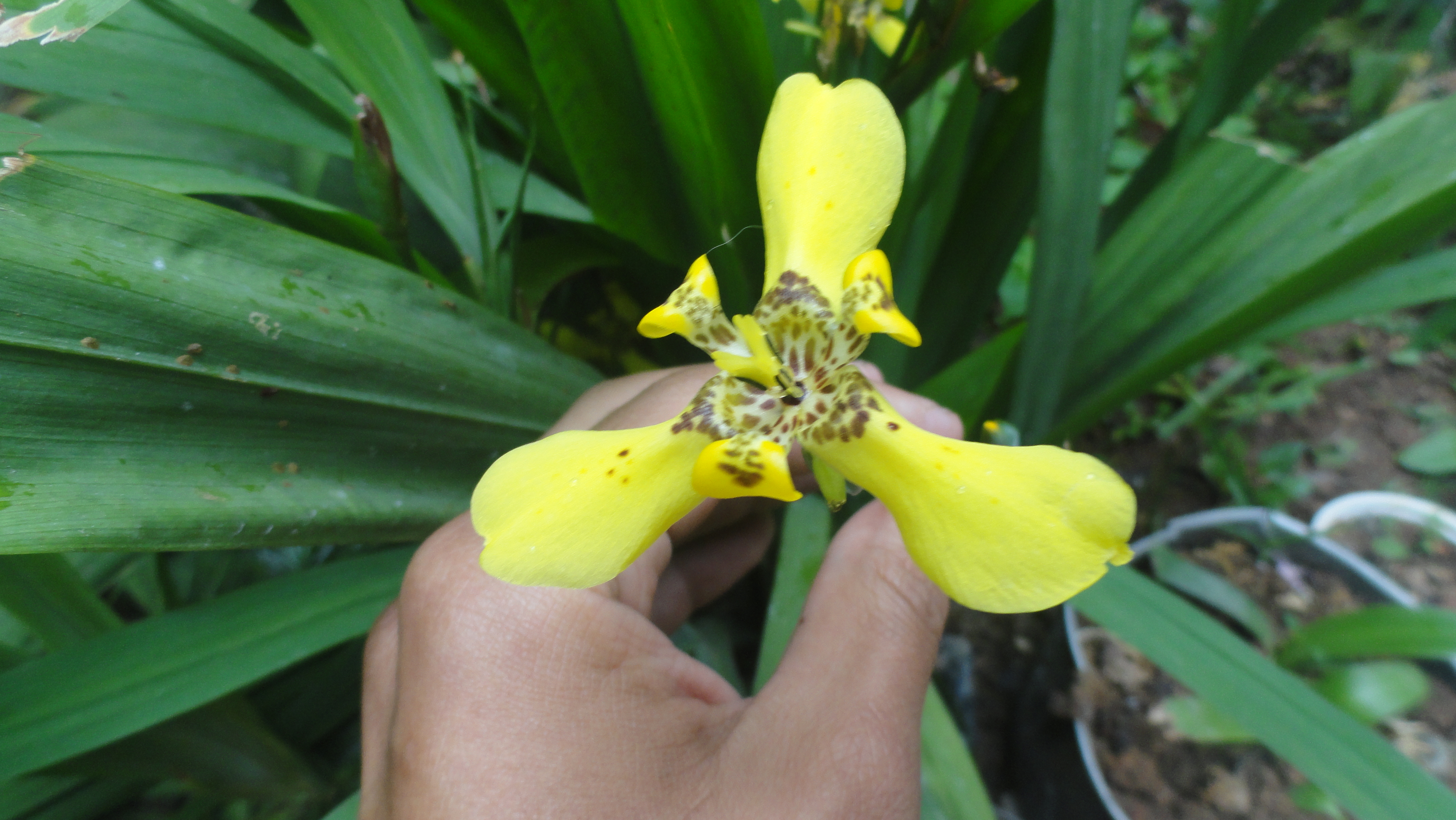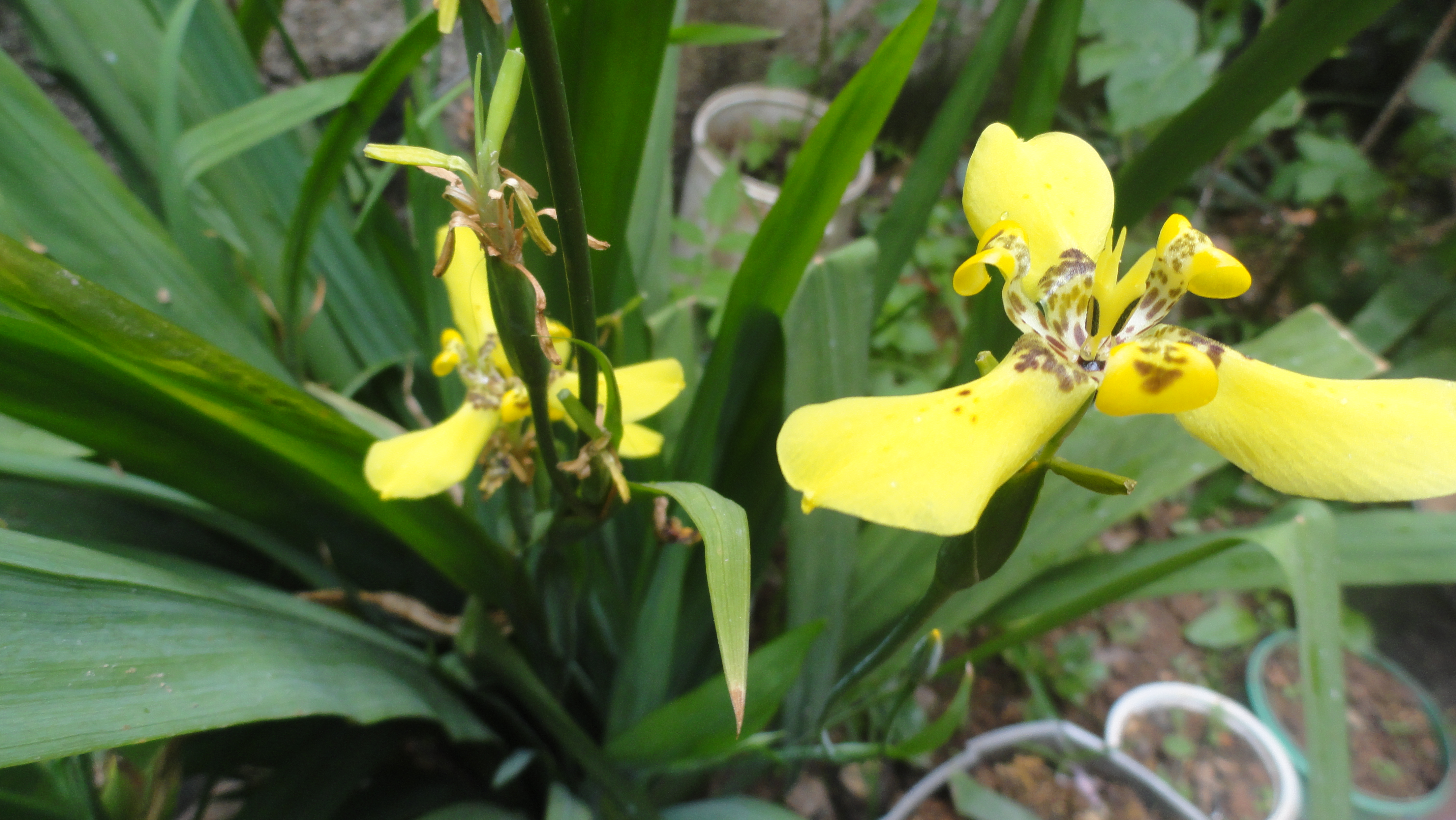 These are the flowers that are found in the garden of my house, called iris and known scientifically as Iris pseudacorus.