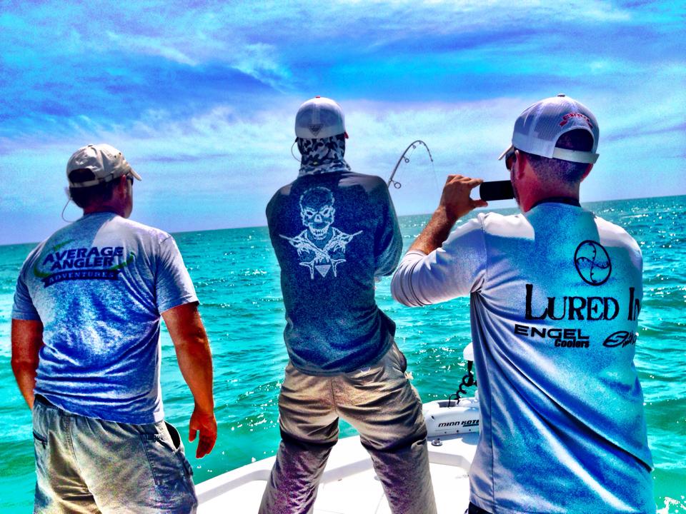 Above you can see the fish jumping out of the water in the distance. These elusive sportfish make high-flying acrobatic jumps out of the water in an attempt to get free. I worked the fish for about an hour and got him close to the boat eventually getting a good look at him in the crystal clear waters before he broke me off. Might have been an inshore light-tackle record if I was able to land the fish since it was only on 20lb leader and 15lb test braided line.
