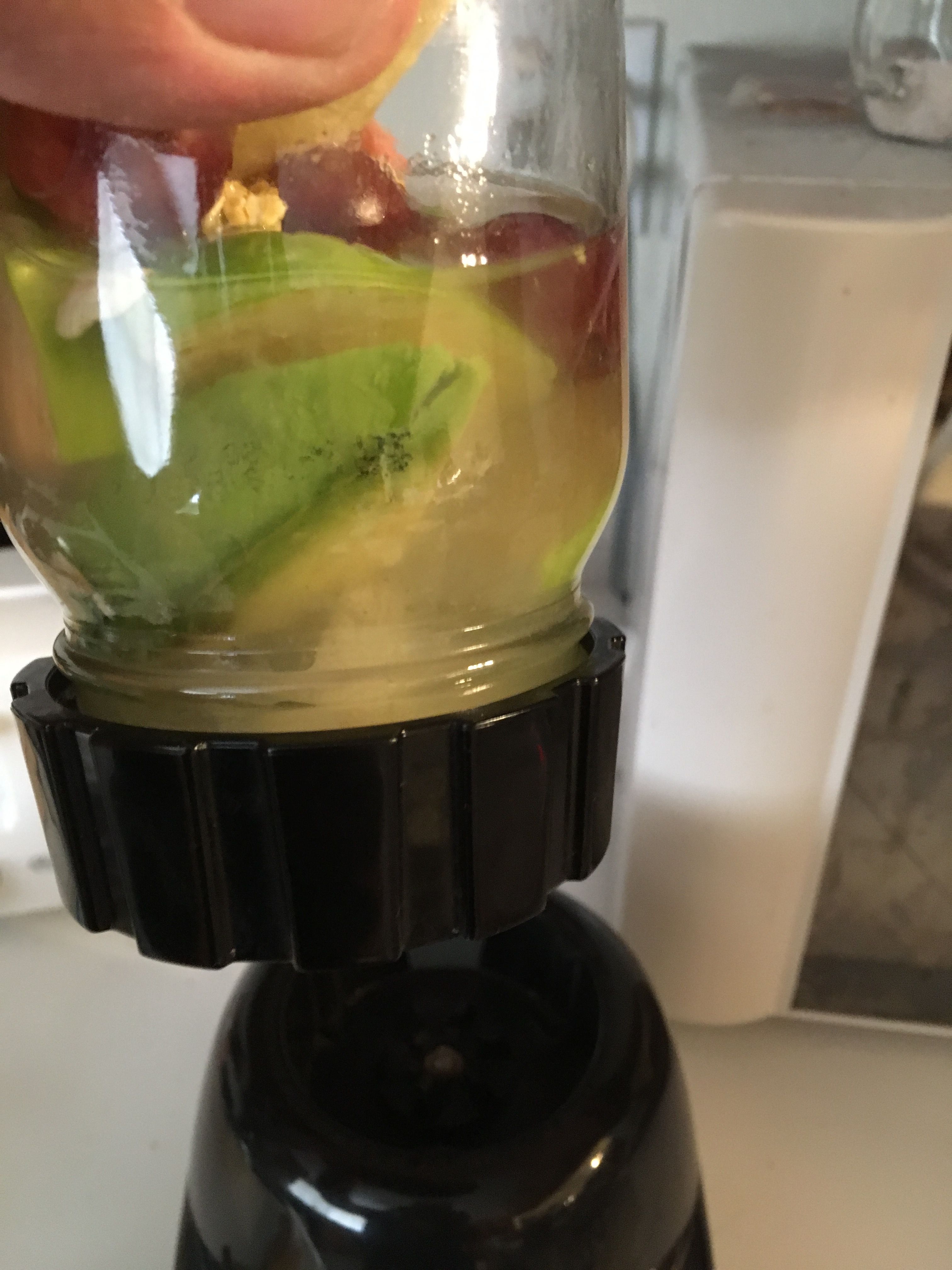 Notice I have the blending cap from my blender screwed right on to the mason jar.