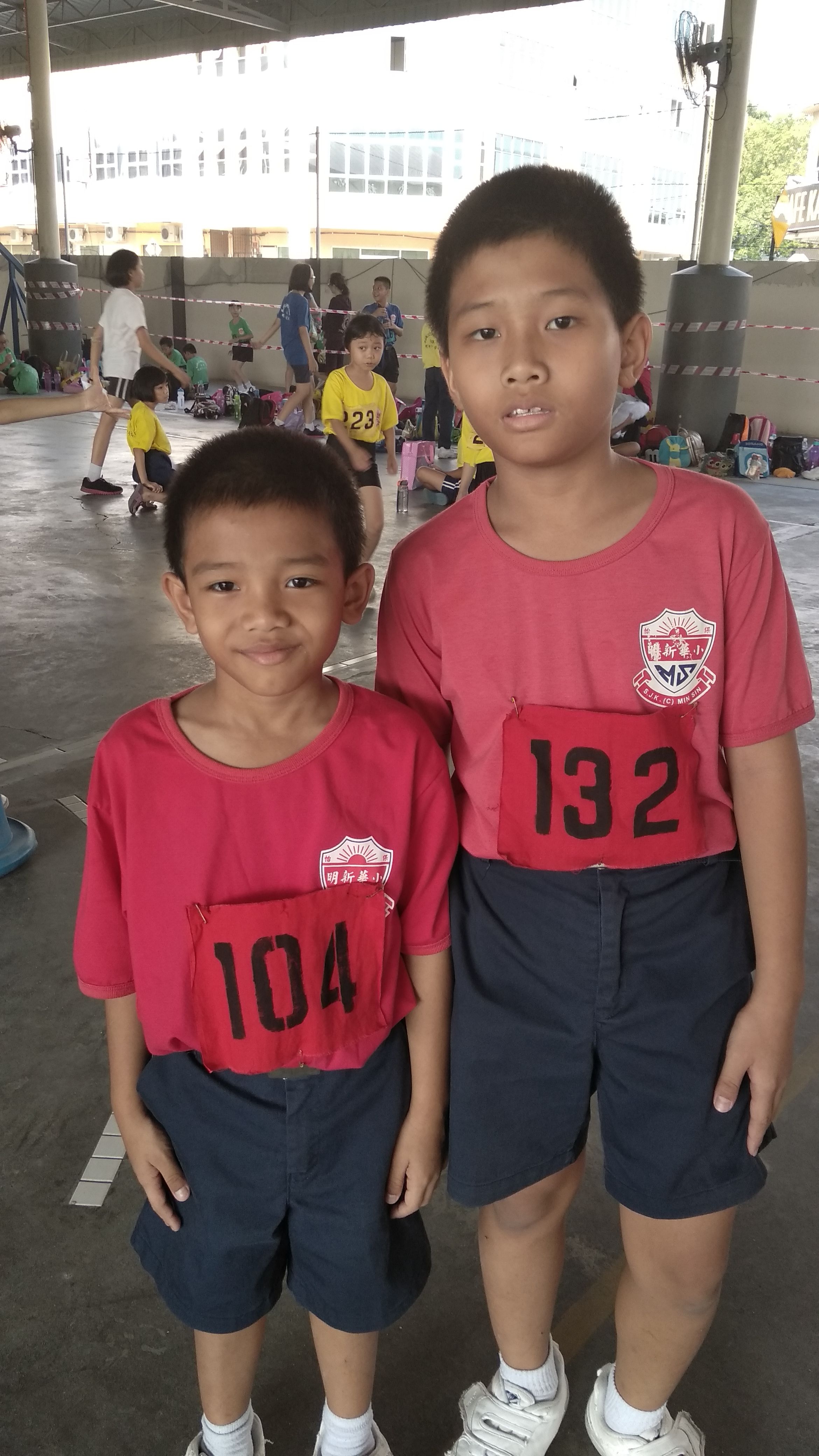 我的照片是在我两个儿子参加学校运动会时拍的,刚好他们都分在同一对。这就是今天的主题红色的红队。在当天他们红队也是全场总冠军。