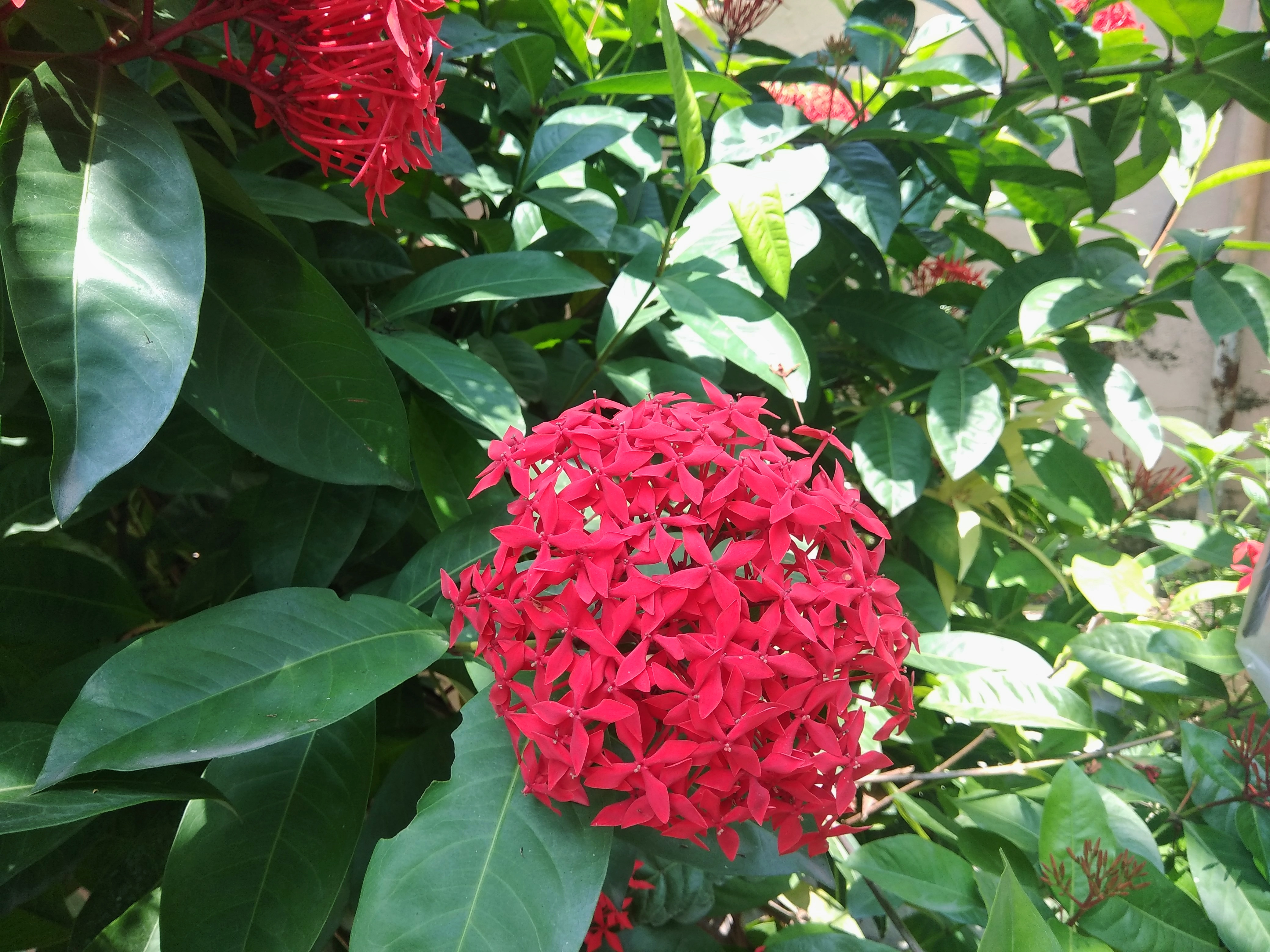 Ixora coccinea, also known as Jungle Flame, is a flowering plant species found in Southern Asia, specifically in India, Sri Lanka and Bangladesh. These beautiful flowering shrubs are one of the most attractive entities of the South Florida garden. The South American country, The Republic of Suriname states it as there National flower.