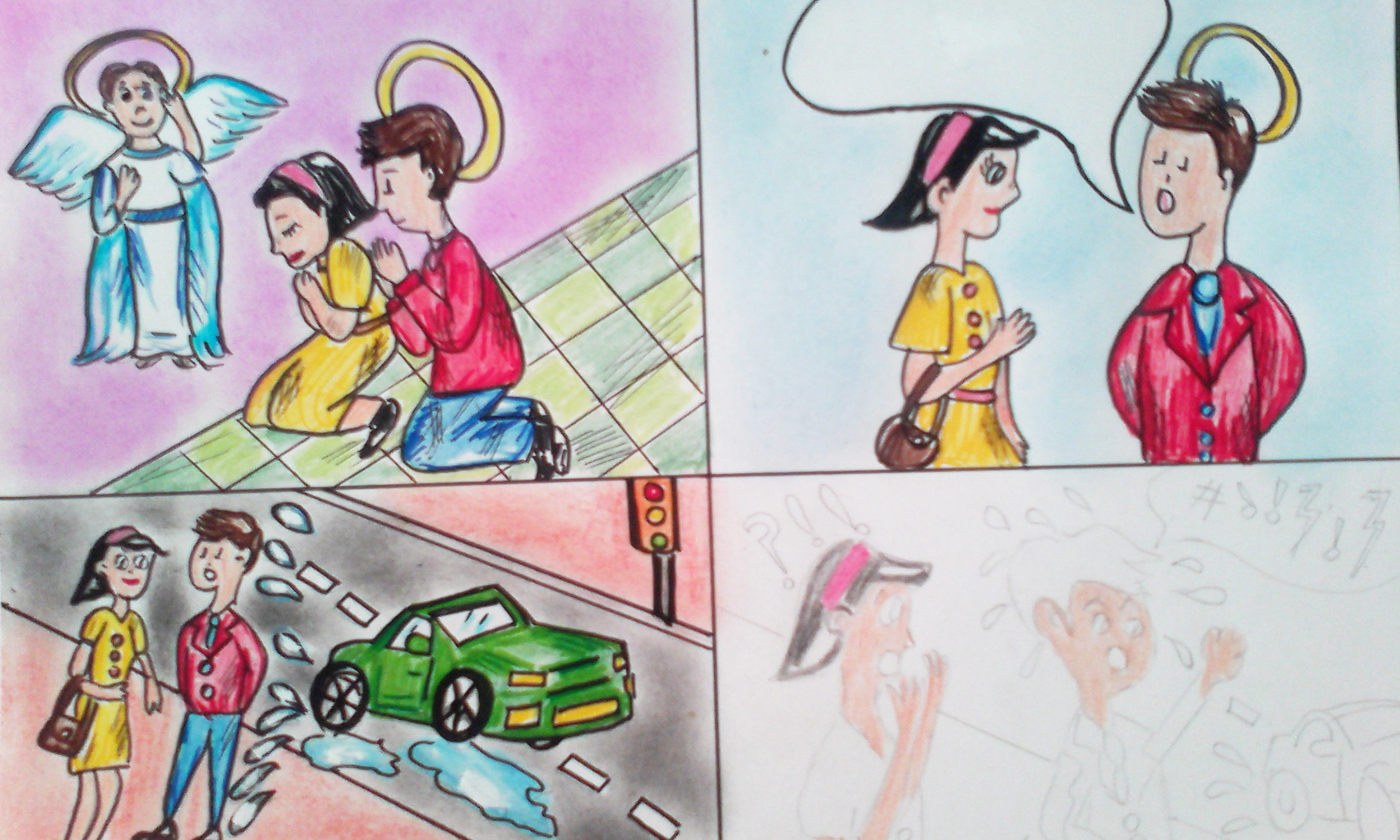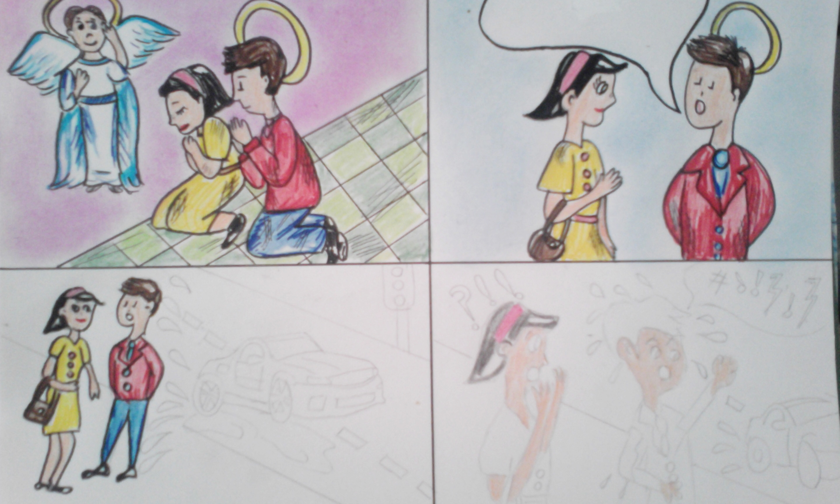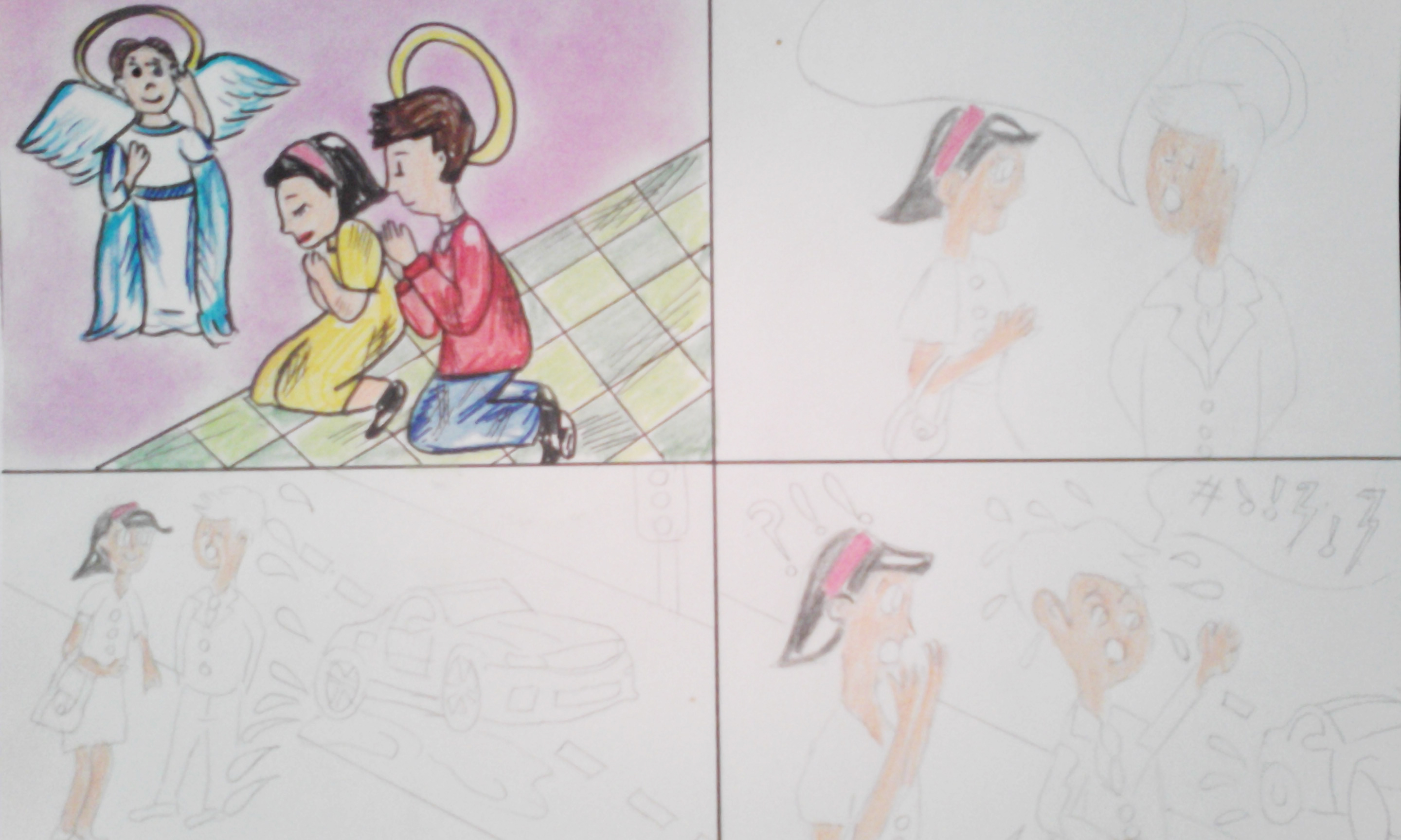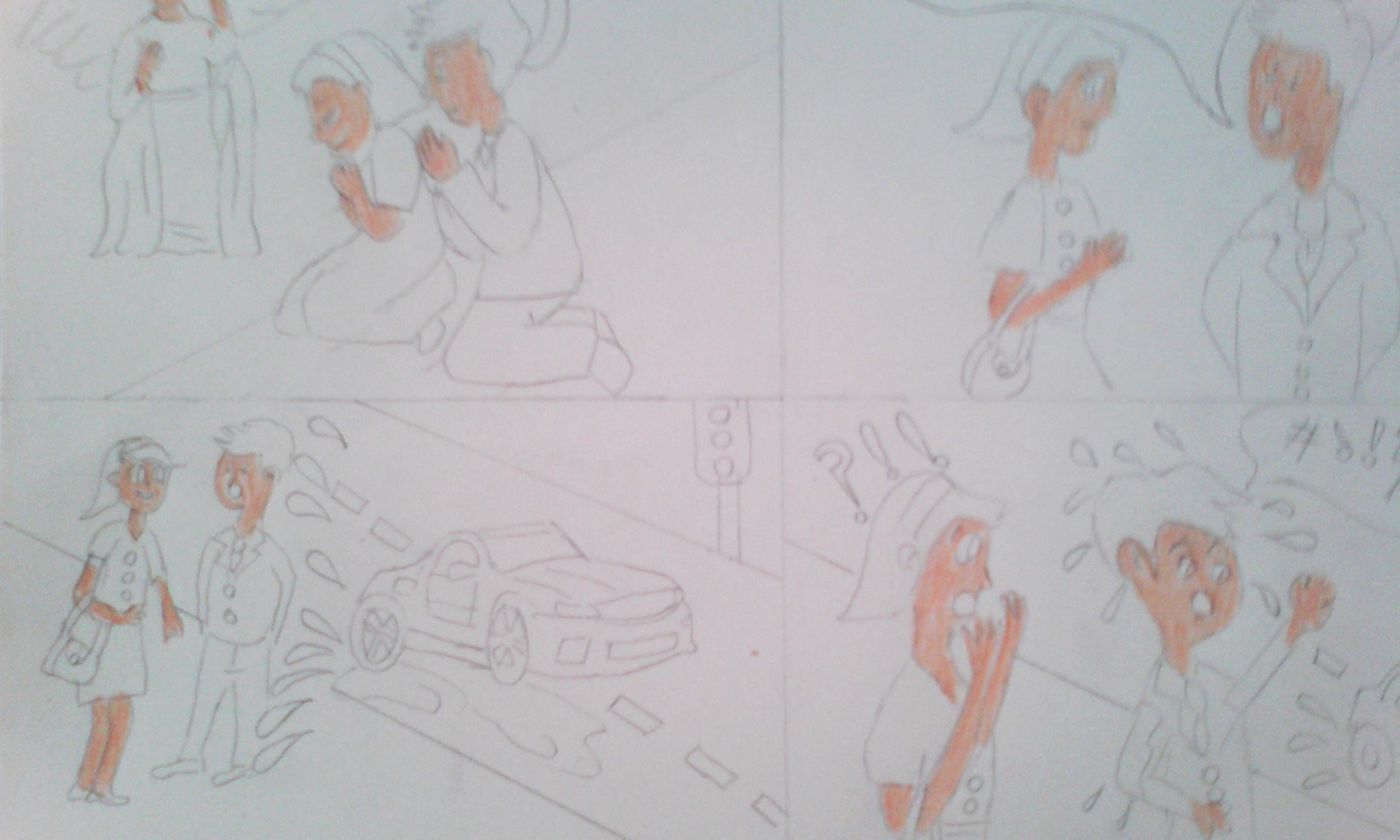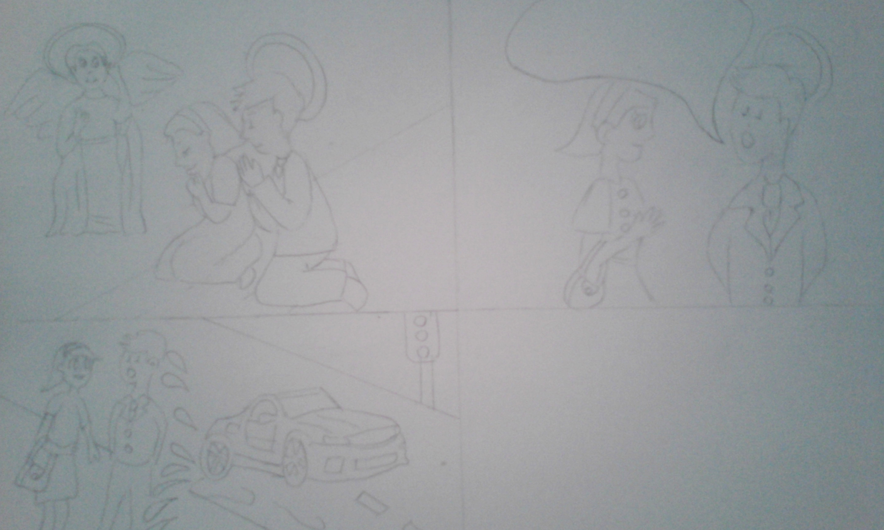 First I drew the characters and scenes: