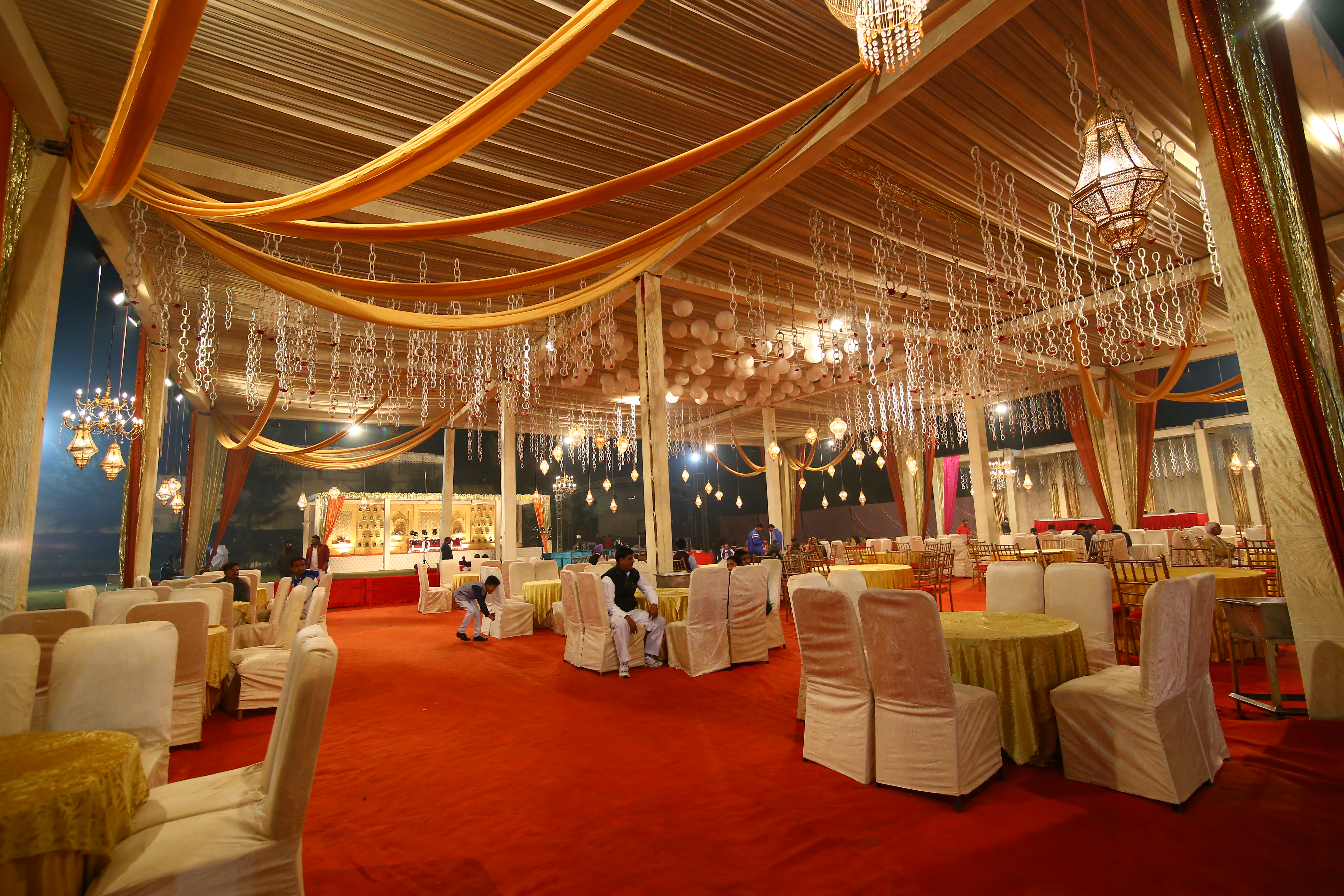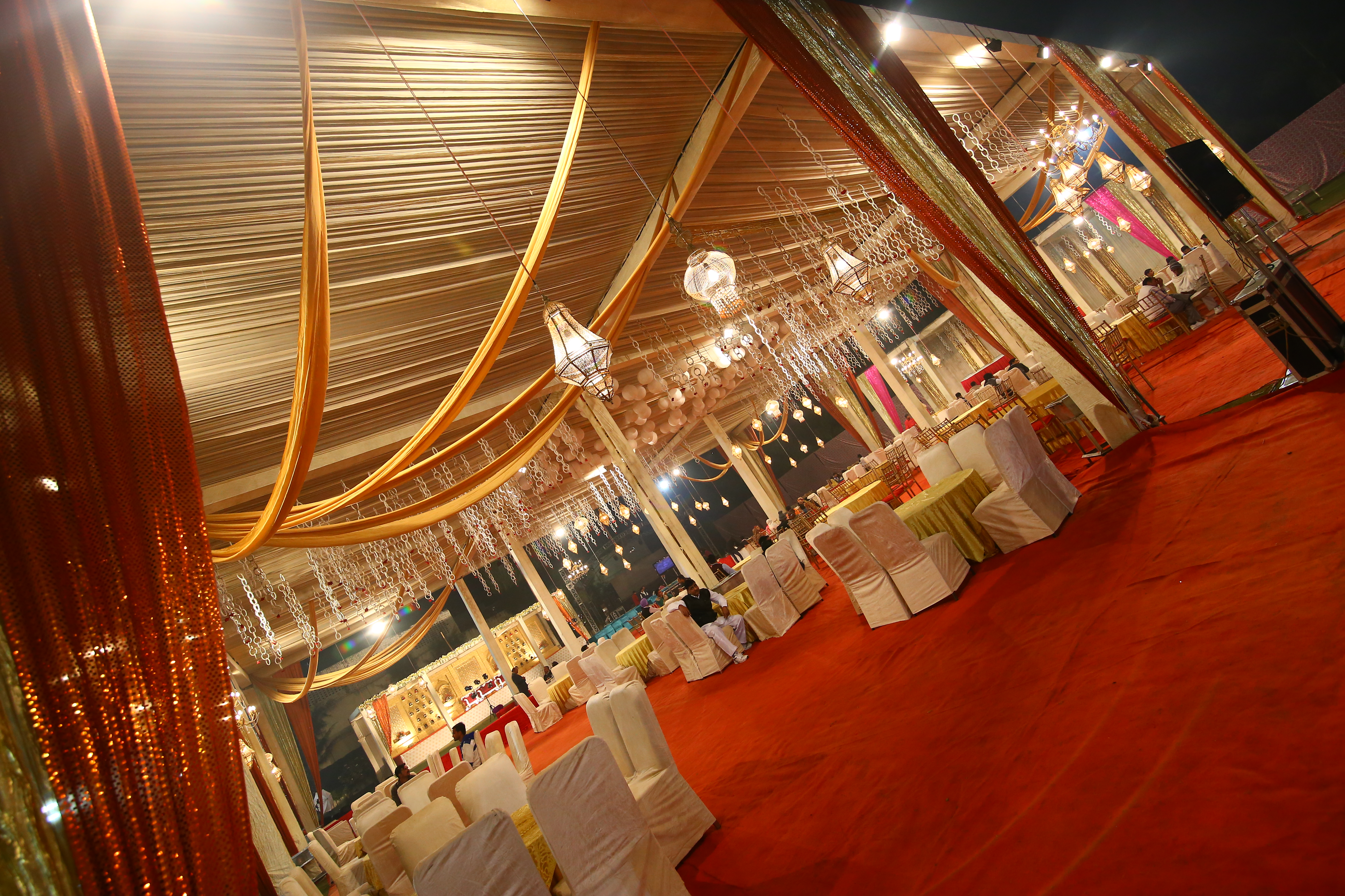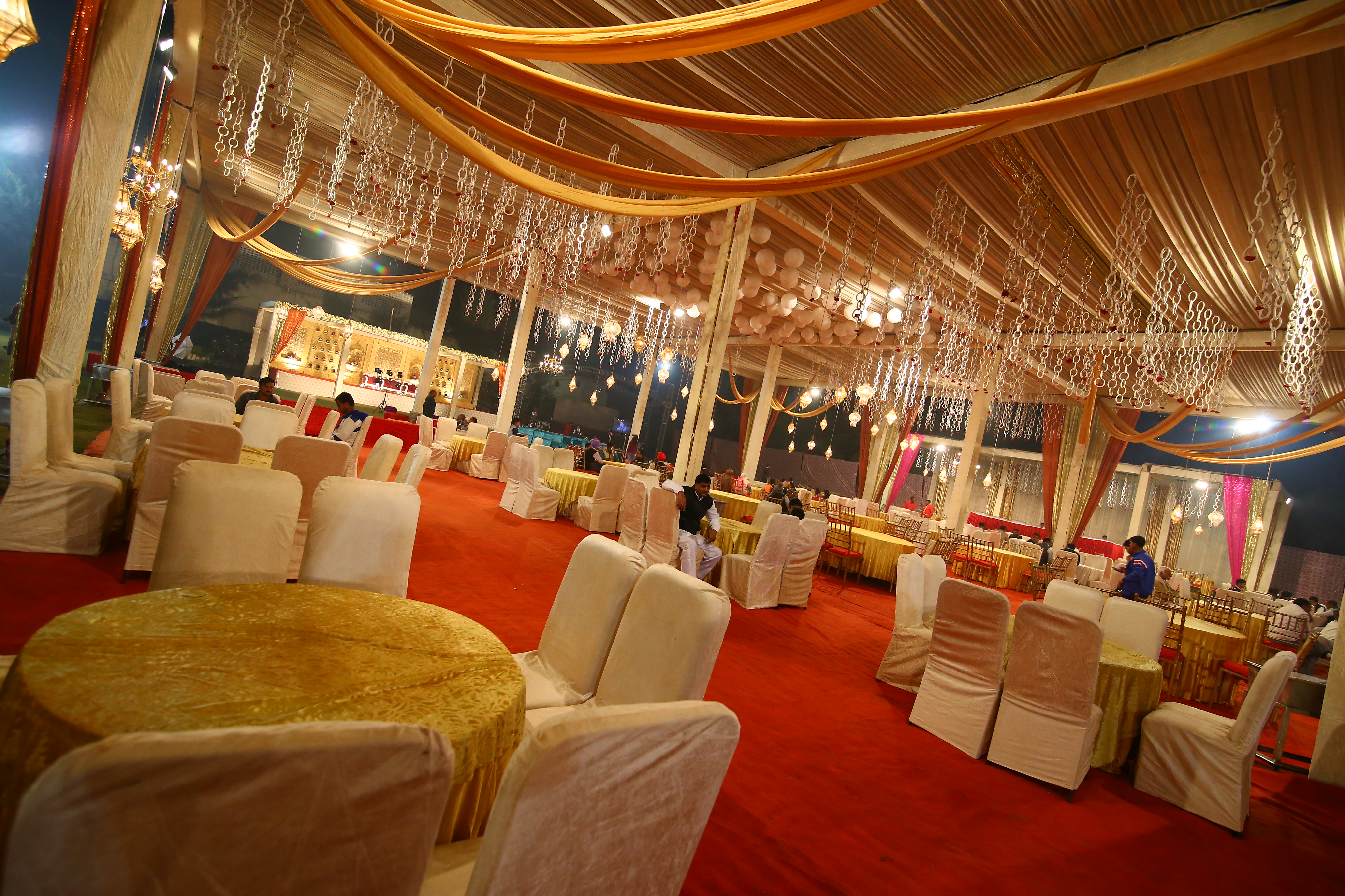 Chair yellow colour is very unique hall. Chairs are arranged very well in welcoming guests.Whereby guests can relax.
