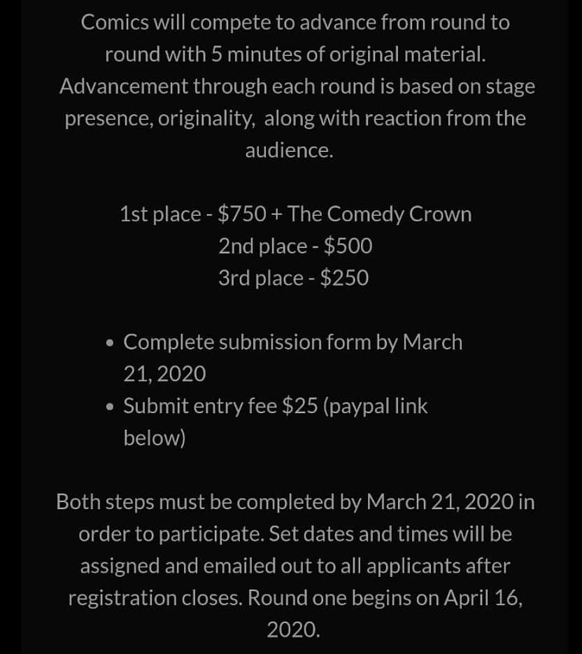 The Comedy Crown - Stand Up Comedy Competition mikesalvi (60)in #comedy • 6 years ago For more info and to register visit www.TheComedyCrown.com Posted using Partiko Android #philly #life #standupcomedy #contest #partiko
