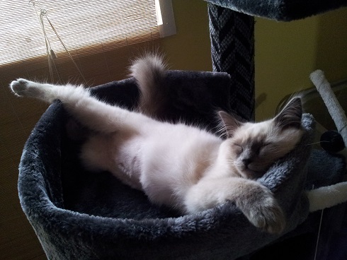 A well deserved nap! Your mum and dad are lucky they have you to look after them. A cats work is never done.