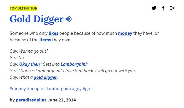 Me: Do you know a gold digger means different thing to different people?