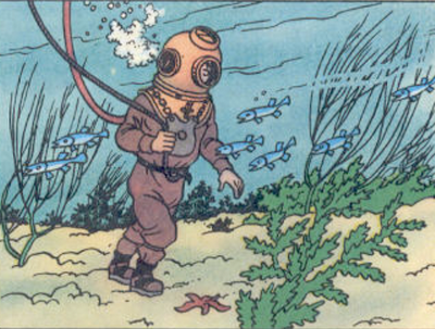 Tin Tin had a diving suit? I think I might be very confused on what kind of stripe Tin Tin was. lol. One of these days I'll get a collection of them and actaully read them