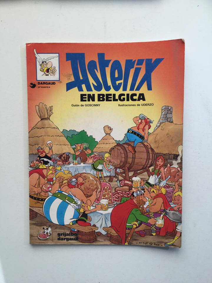 Cuando tenia como 9 años la manera que mi papá tenia para darnos nuestro "domingo" a mis hermanos y a mi era haciéndonos competir a quien metiera mas canastas, o mas goles jugando entre nosotros, para motivarnos, nos llevaban al Aurrera de constituyentes y al que el consideraba el ganador le dejaba escoger un libro para colorear, una revista o un comic. Una vez llegamos y el se percató que vendían un montón de libros de Asterix, el ya nos había hablado mucho sobre el título y recuerdo que lo que mas me llamo es que fue un comic que el leía de niño? Al momento de escoger en una ocasión que la suerte me sonrió, y los dioses del Olimpo me dejaron meter una canasta mas que mis hermanos, al momento de escoger la dominical recompensa la jovial portada de Asterix en Bélgica salto antes mis ojos y me impacto mucho ver a un montón de lo que en ese momento yo pensaba eran vikingos en un bacanal, bebiendo, comiendo, y golpeando romanos. "No son vikingos, son galos" me reafirmo mi papá, creo que fue el primer comic que adoré, entre mis hermanos y yo logramos tener todos, los leíamos hasta el cansancio y nos los intercambiábamos para poder platicar de todos los títulos y sobre que personaje le simpatizaba mas a cada quien. Una obra maestra de la narrativa gráfica, inteligente, critico y muy gracioso Asterix en mi humilde opinión es el Premio Nobel del comic