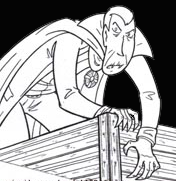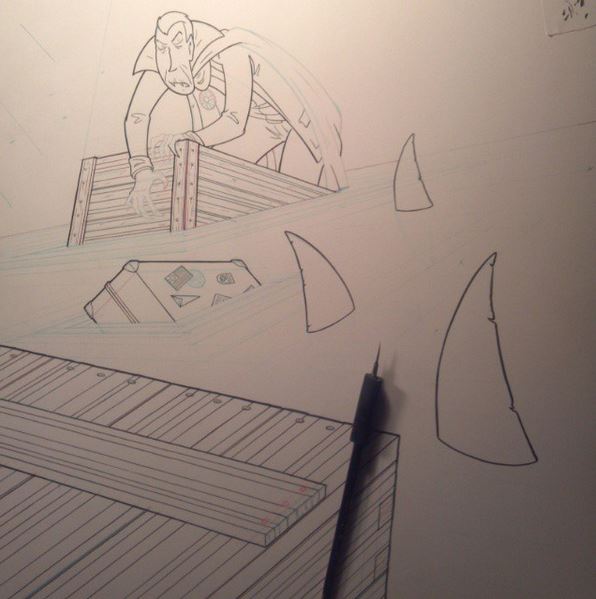 We have a Vampire floating away from a sinking ship and being surrounded by sharks. Interesting enough. and the concept is what makes so...not whether or not the f*cking boxes are in correct perspective. BUT...when you get a brand new hammer for your birthday, suddenly everything looks like a nail.