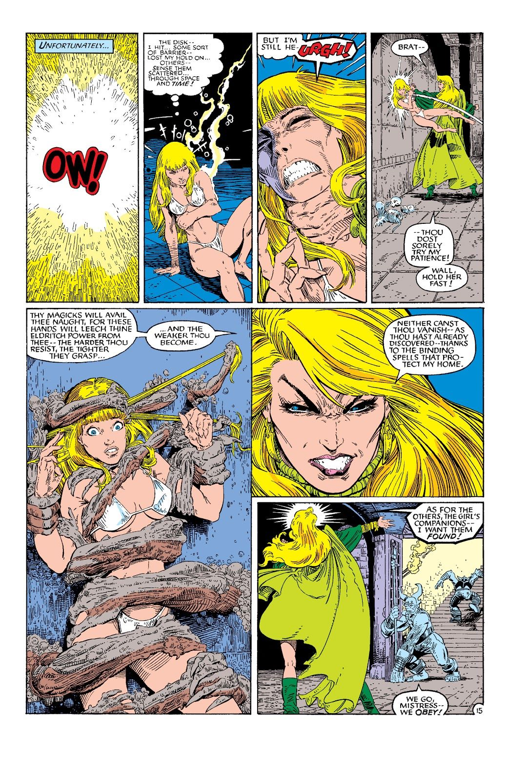 Enchantress se muestra como la villana que es, despiadada. Lo que ignora es que Illyana Rasputin, alias Magik, pese a su corta edad, tiene un alma obscura.