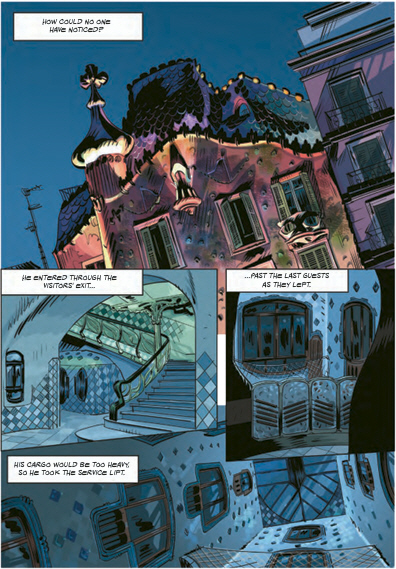 Every so often, a graphic novel or comic crosses my screen that I cannot resist. Anything this unusual, that also promotes the great Antoni Gaudi, fills that requirement. The scene is Barcelona, where a series of murders take place in all the great landmarks designed and built by Gaudi.