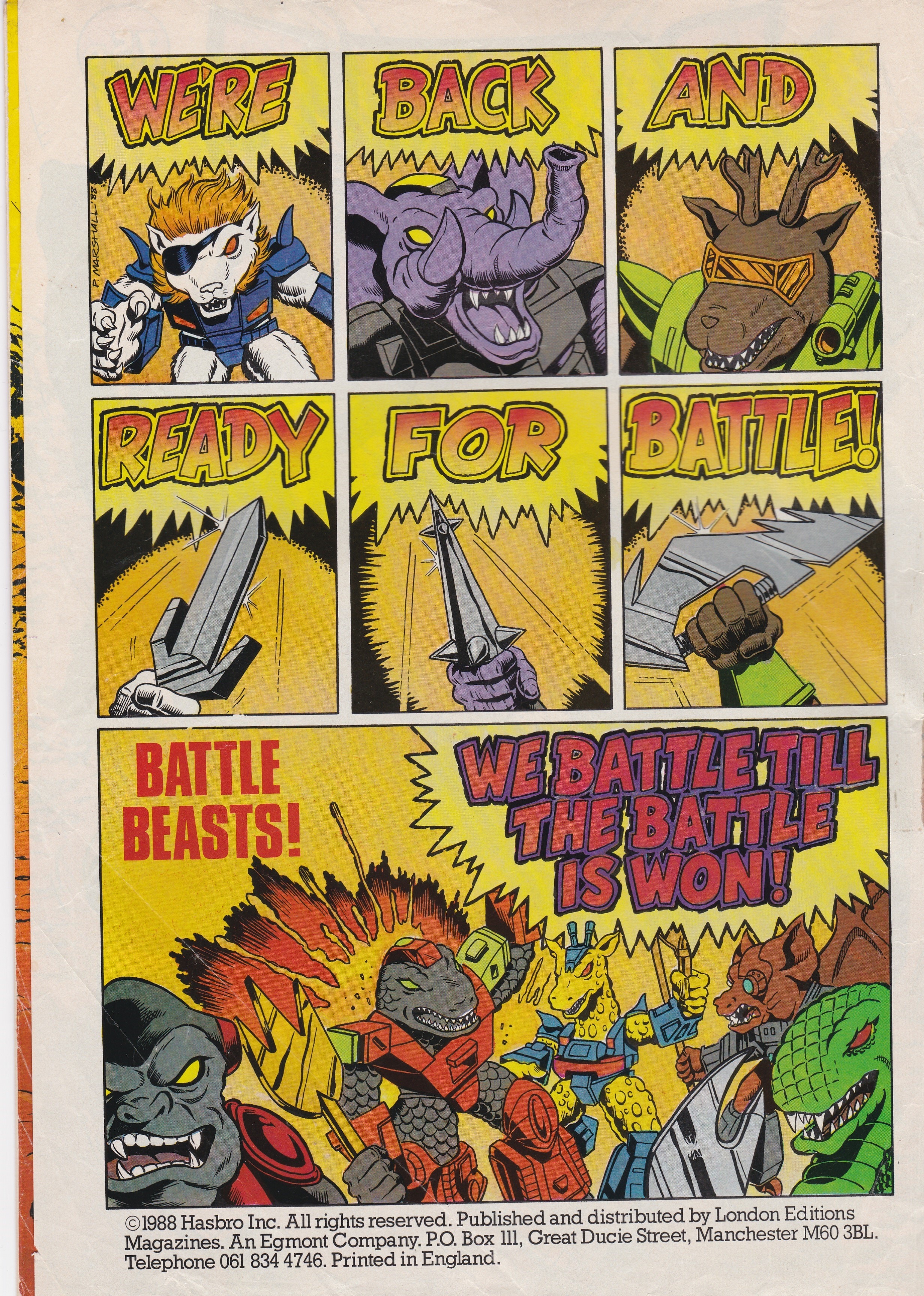 The only advert in Battle Beasts Special No. 2 is for the Visionaries toy line, another of Hasbro's properties. Surprisingly though there isn't an ad for the Battle Beasts themselves.