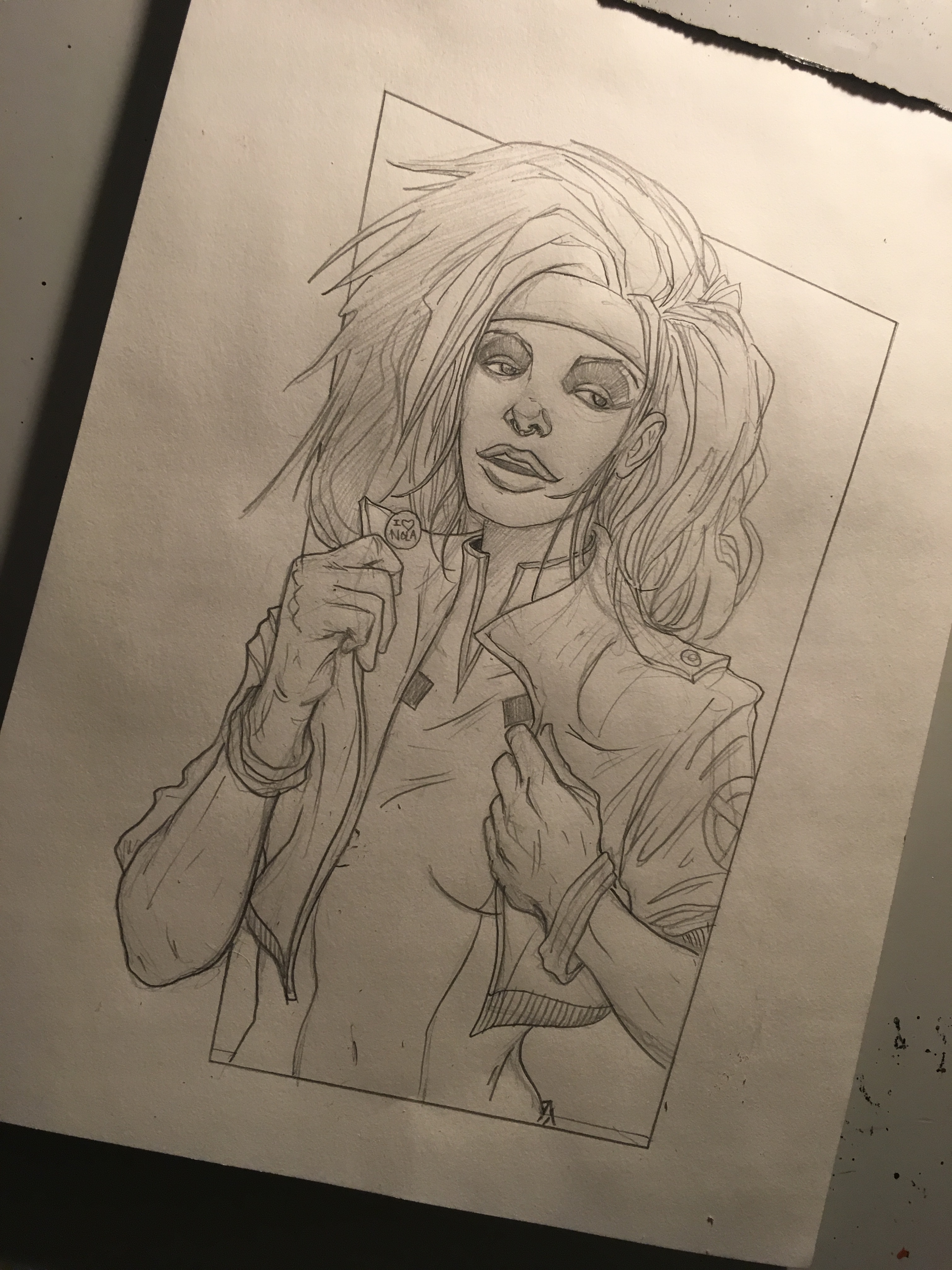 Nothing much to report tonight, inking away on a pretty enjoyable monster comic. Had to wait and let my iPad charge a bit. Which means time to hit that paper! Tonight it was Rogue from the X-Men, pencil on paper.