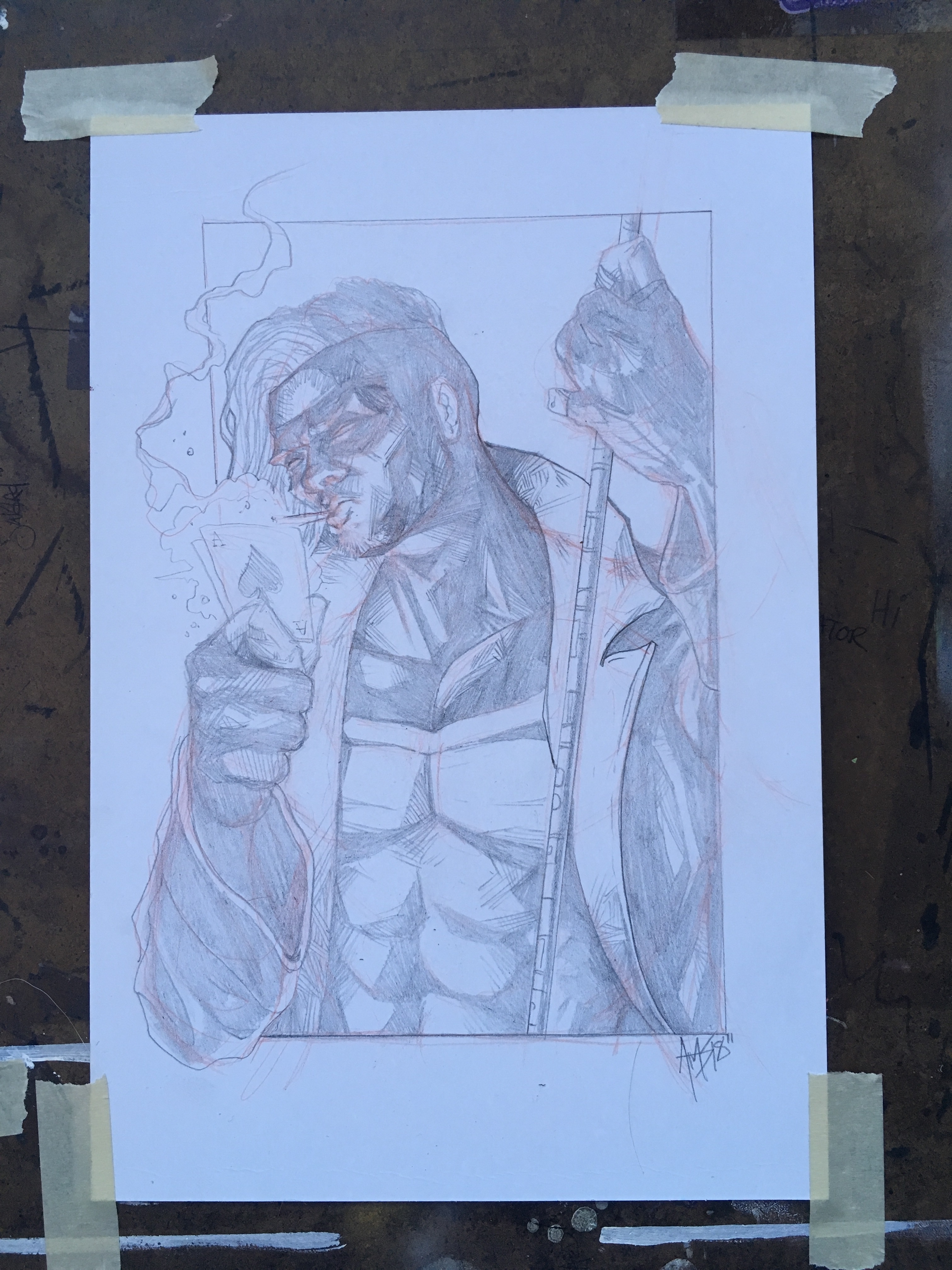 Earlier in the week, during a similar iPad charging intermission, I sketched out a Gambit piece on a comic backing board. Figured I’d throw it online for a reasonable price, and it was snatched up pretty quick. Only seemed fitting to draw Rogue next. But here’s the Gambit anyway.