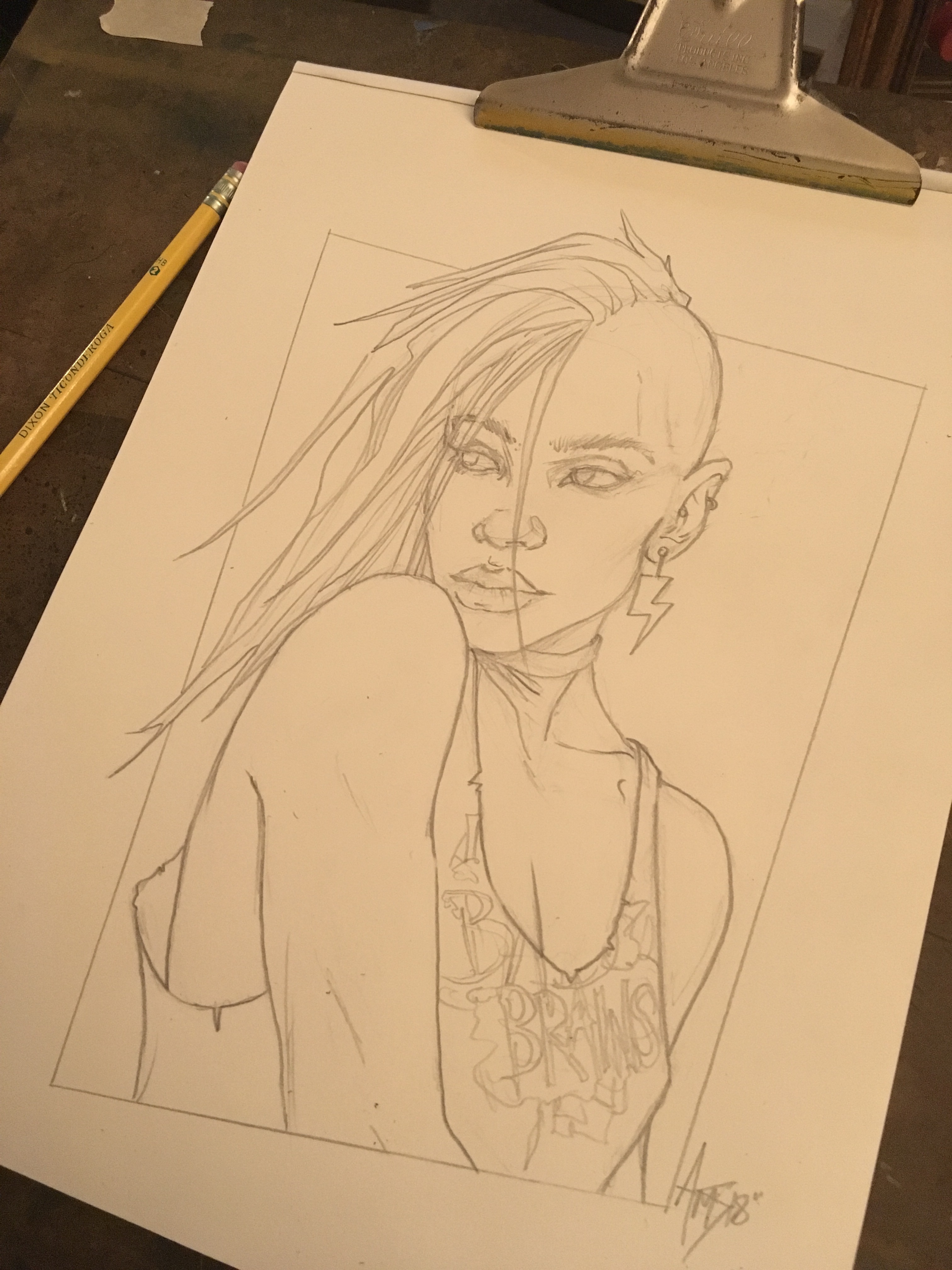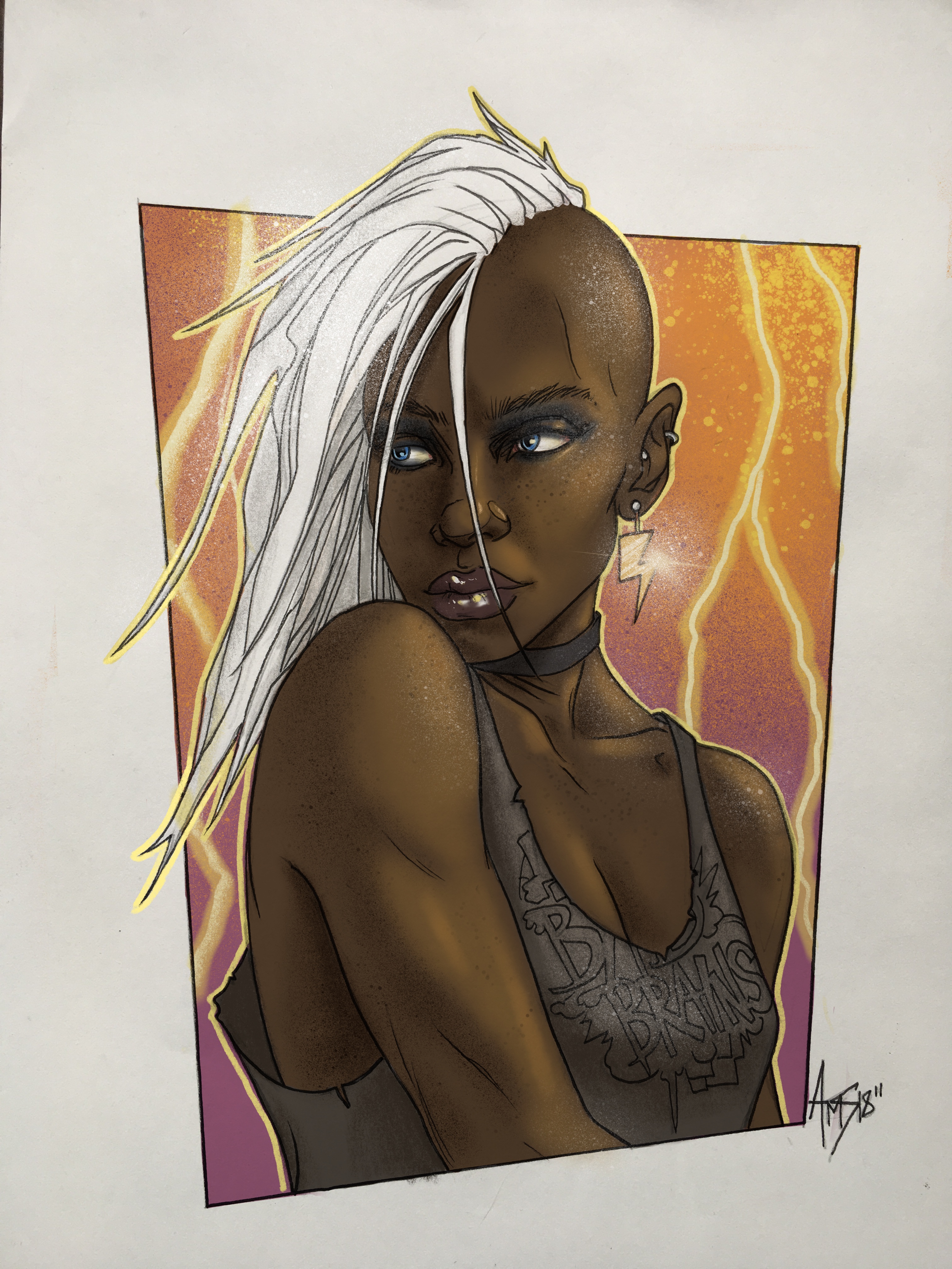 The pencil sketch; I always dug the mohawk look for Storm. I decided to bring a bit of an 80s punk rock look to the rest of the design.