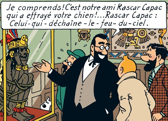 Le mystérieux Gerome Beatty-Philpot commence à raconter son histoire - accompagné d'une étrange imagerie qui j'imagine s'infiltre dans sa personnalité. Le personnage (qui est déjà mentionné à la page 23 a un nom étrange et la raison en est que je voulais une anagramme du nom: Hippolyte Bergamotte - un scientifique de l'album de Tintin, Les Sept Boules de cristal. (Dans la version anglaise, il s'appelle Hercules Estragon.) Comme vous pouvez le voir, ils ont tous les deux une barbe noire carrée.