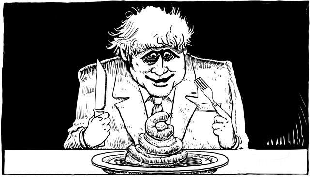 Ndt: Les saucisses dans l'assiette devant Boris Johnson ressemblent à un émoji bien connu!