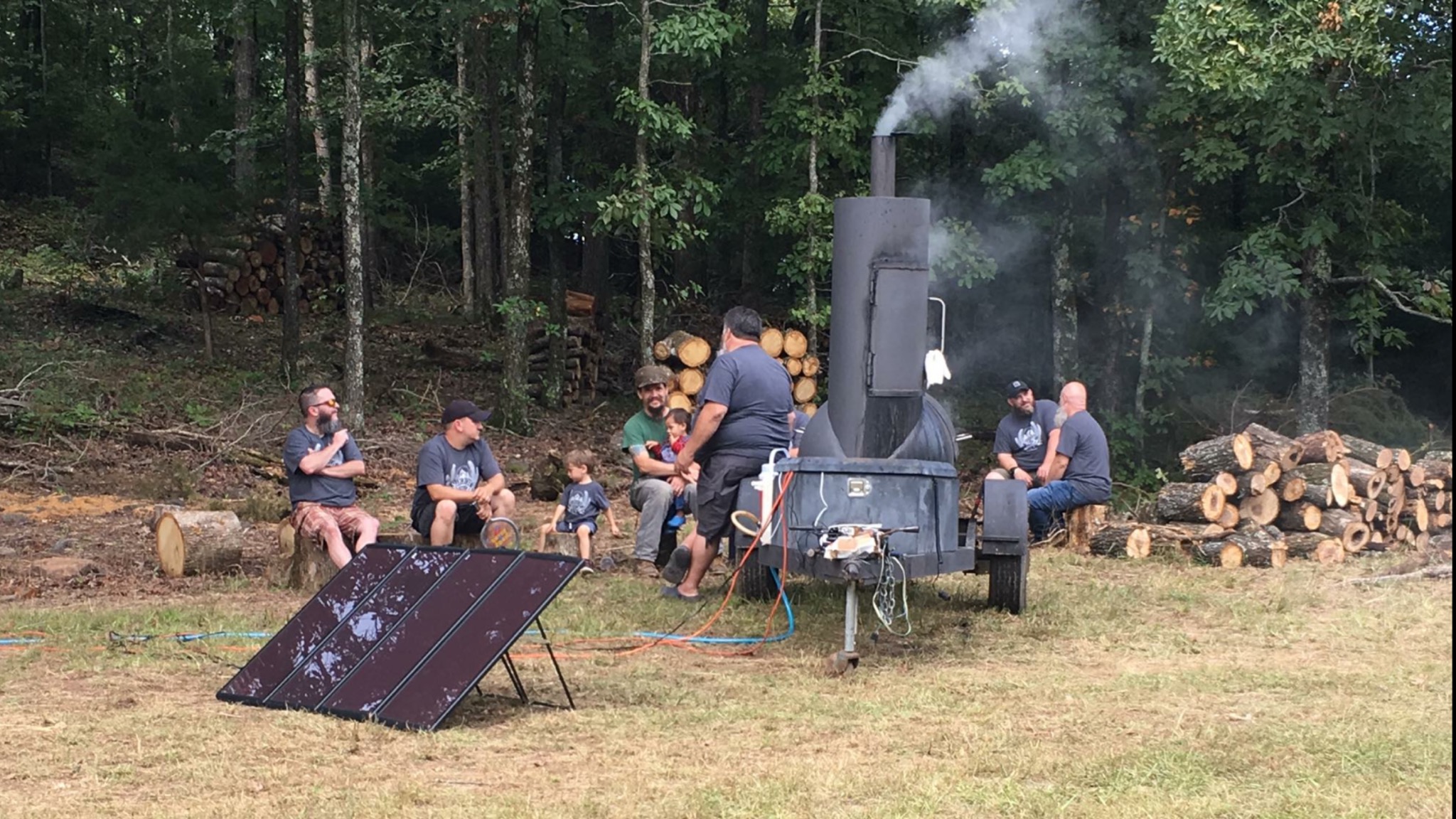 On a side note about the pecan wood and the cooker—that isn't a pellet stove, right? You're putting in decent sized pieces of wood into it. I imagine, they still must be cut smaller to get enough wood in.