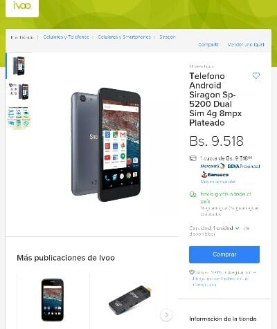 Cell phone price: 9.518Bs.S
