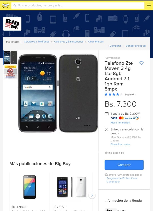 Cell phone price: 7.300Bs.S