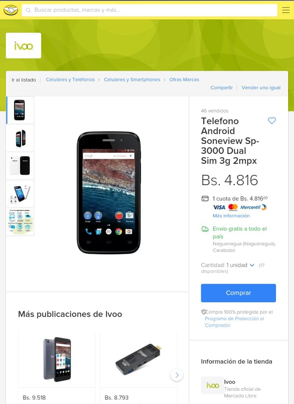 Cell phone price: 4.816Bs.S
