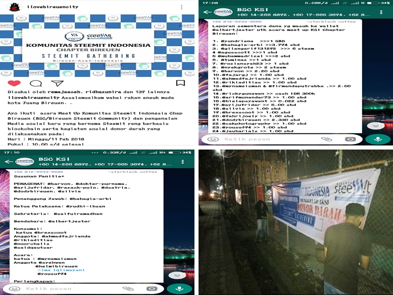 Dua minggu yang lalu seluruh anggota komunitas BSC (Bireuen Steemit Community) melakukan persiapan untuk mensukseskan acara Meet Up. Persiapan di lukukan mulai dari pembertahuan kepada seluruh anggota komunitas akan di adakan MEET UP, persiapan waktu dan tempat, persiapan dana untuk acara dan seluruh dana di sumbangkan oleh anggota BSC dan steemians lainnya ikut membantu memberikan donasi demi mensukseskan acara MEET UP pertama untuk Komunitas BSC. Kemudian persiapan peberitahuan akan di adakan MEET UP dengan memasangkan Spanduk di tempat keramaian, sehingga mengundang siapa saja untuk bergabung di acara tersebut. Udangan juga di sebar luaskan mulai dari mulut ke mulut, melalui social media (Steemit, Instagram). Persiapan acara juga di lakukan kerja sama dengan PMI Unit Bireuen untuk melakukan Donor Darah pada hari MEET UP nantinya.