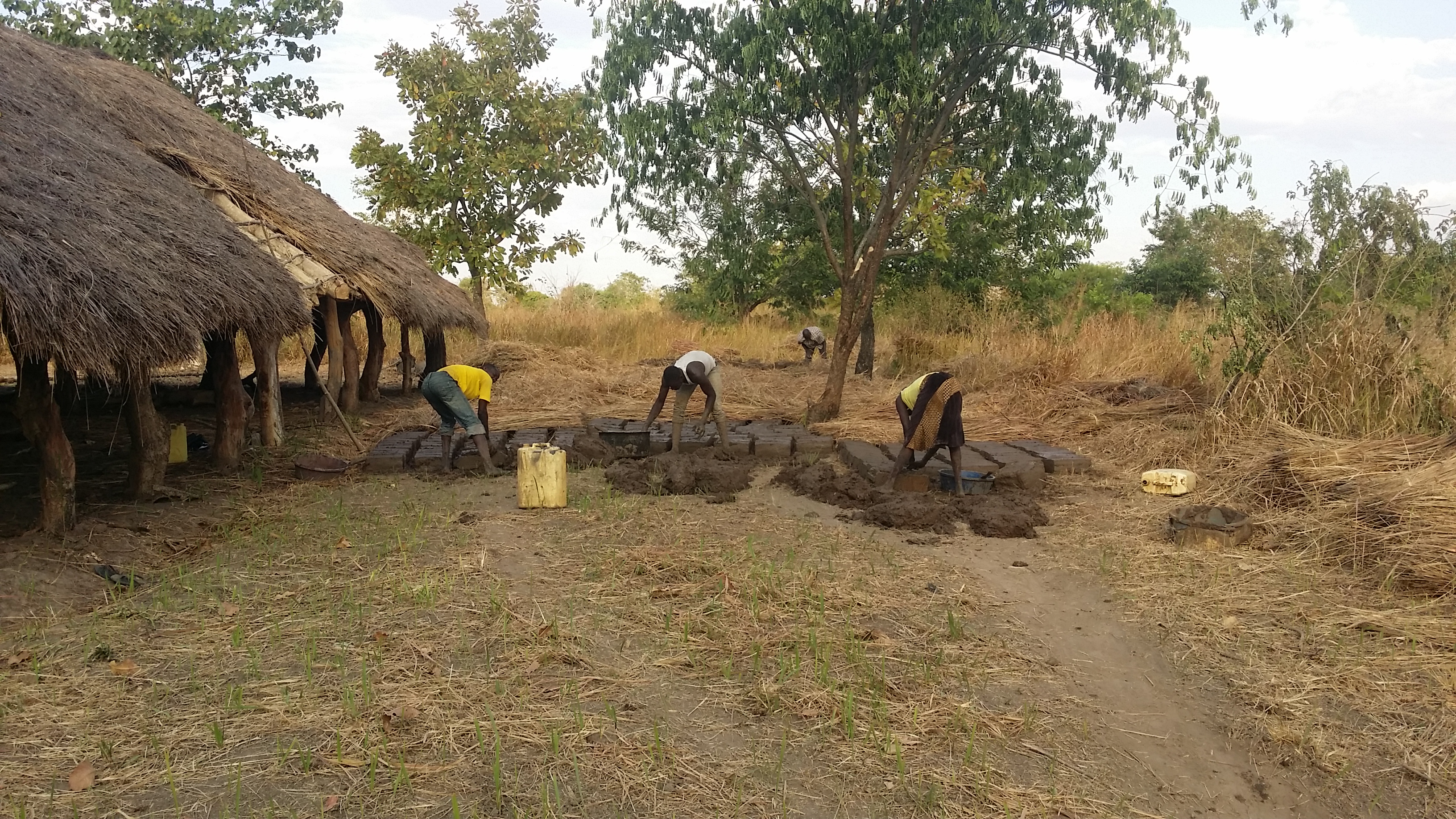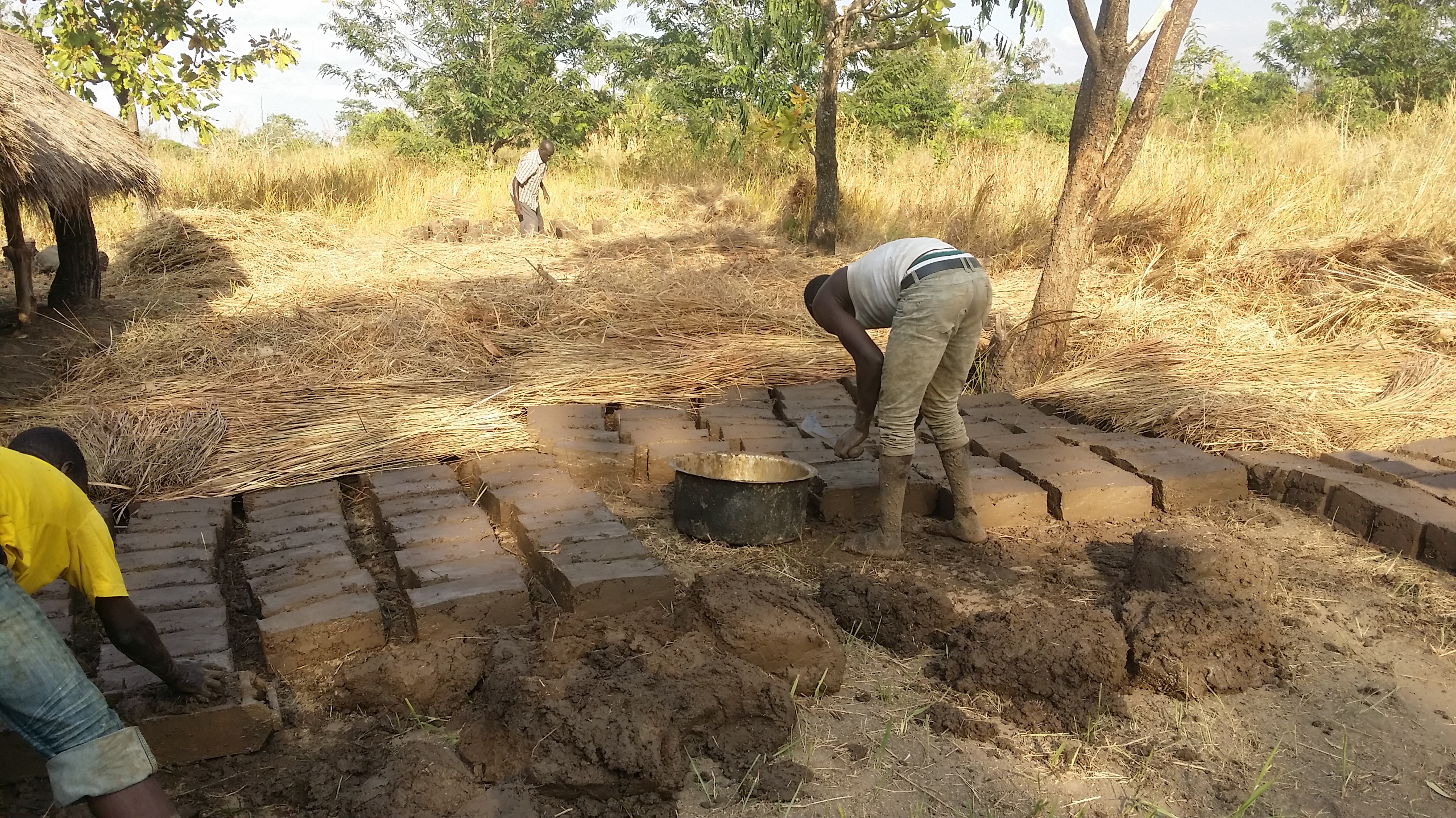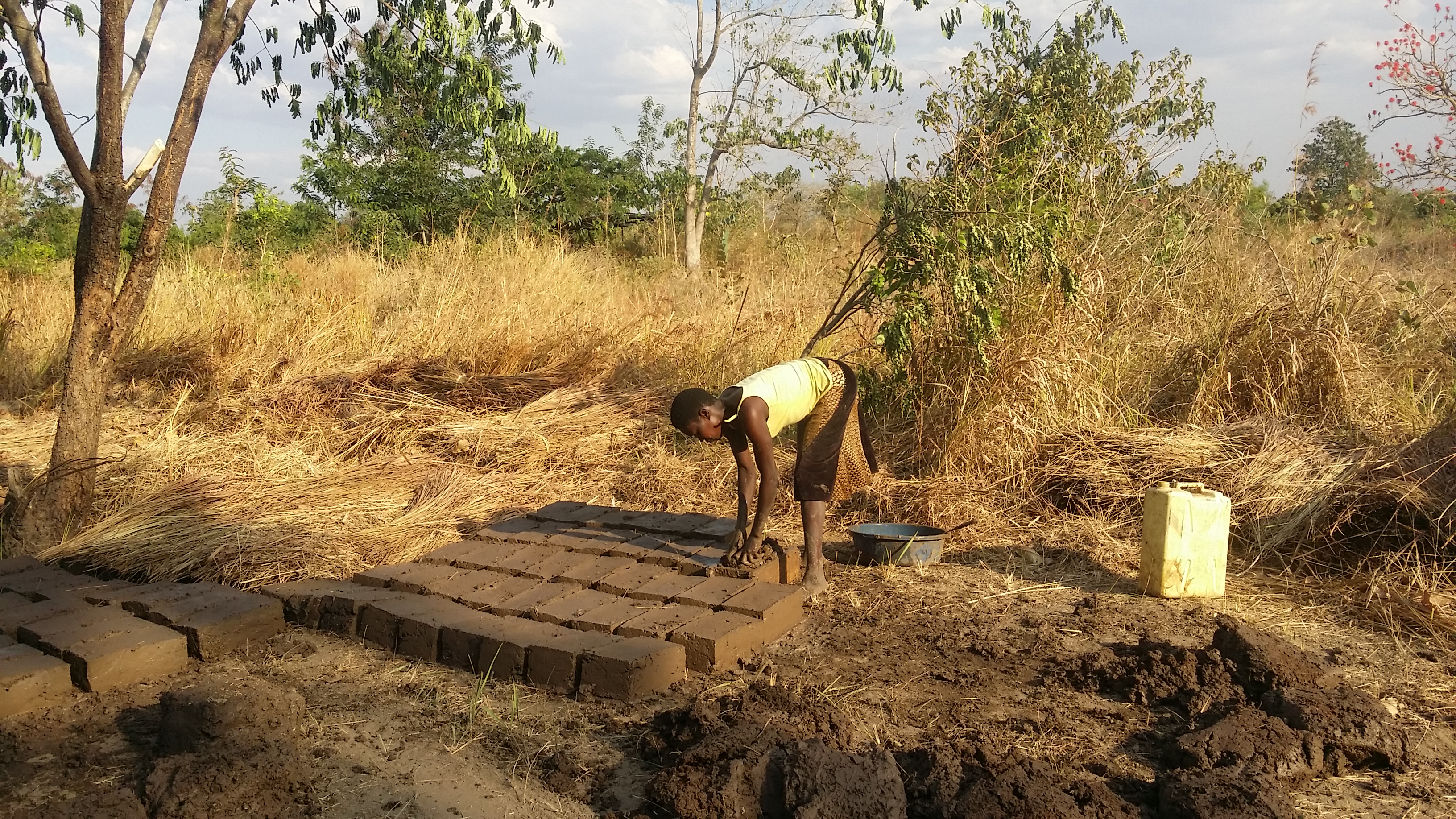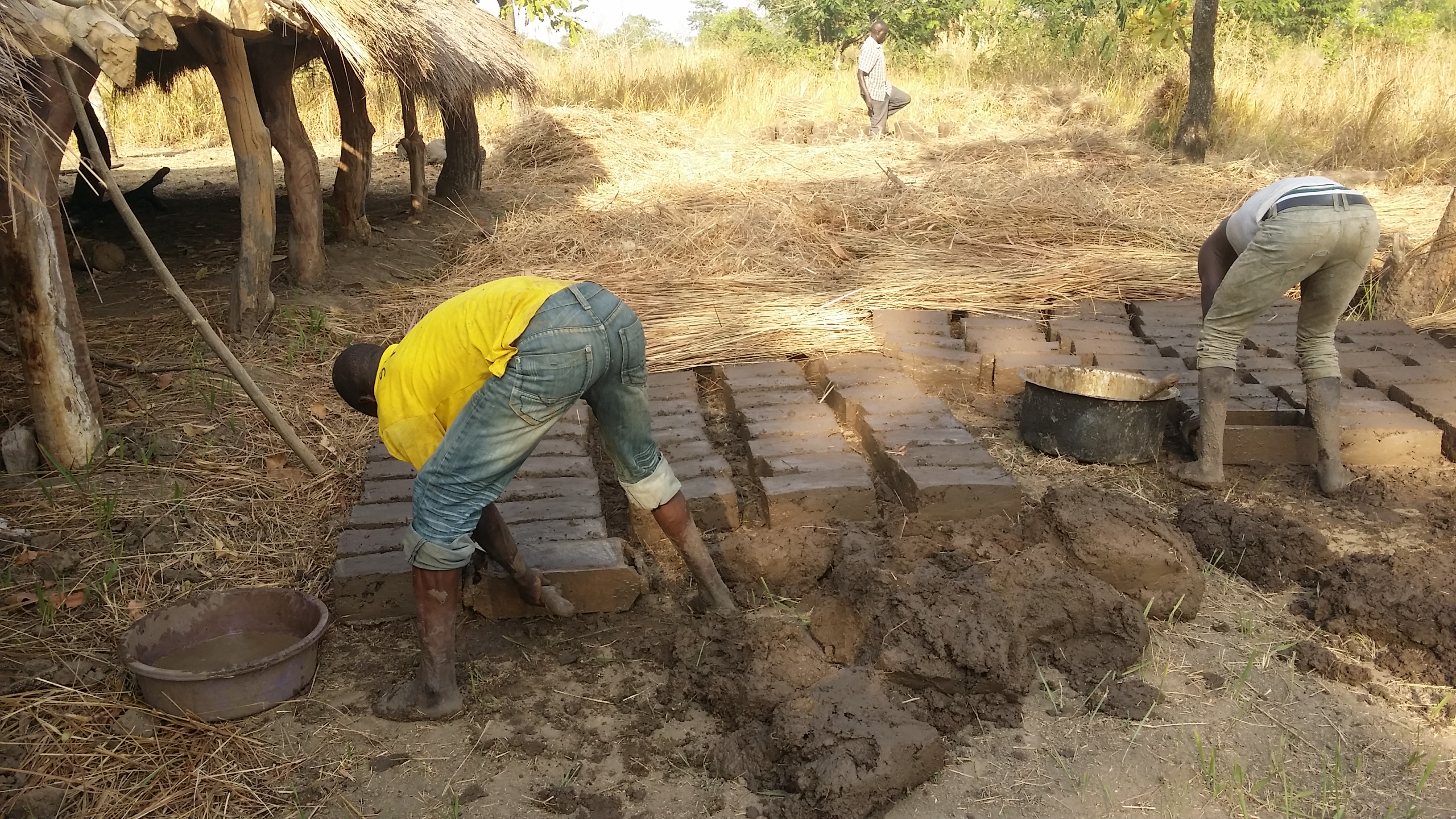 In my village, me and other youth we would make bricks for building house, and sell. This bricks we make with mud, and water, and tray. You see the photos below.