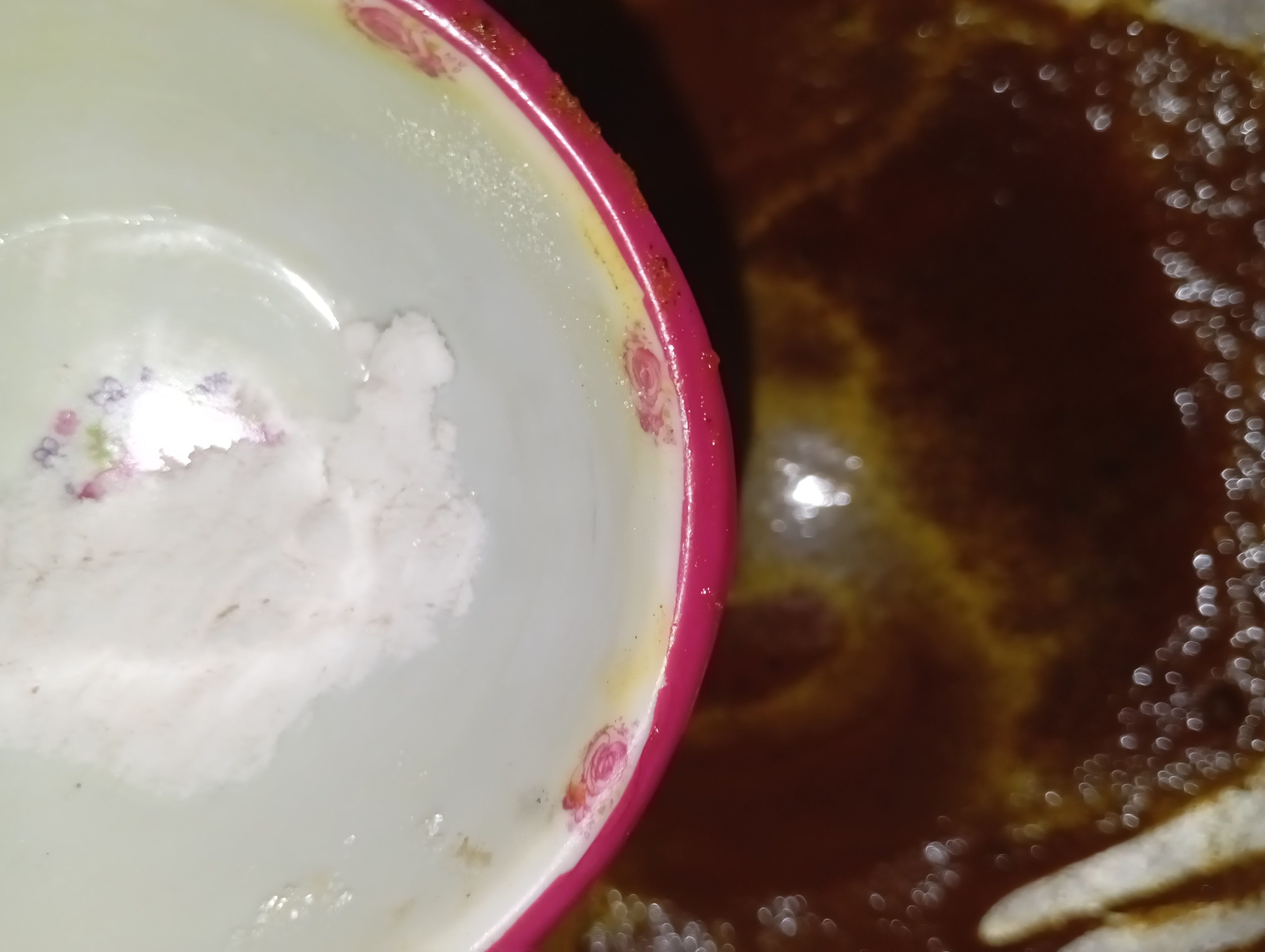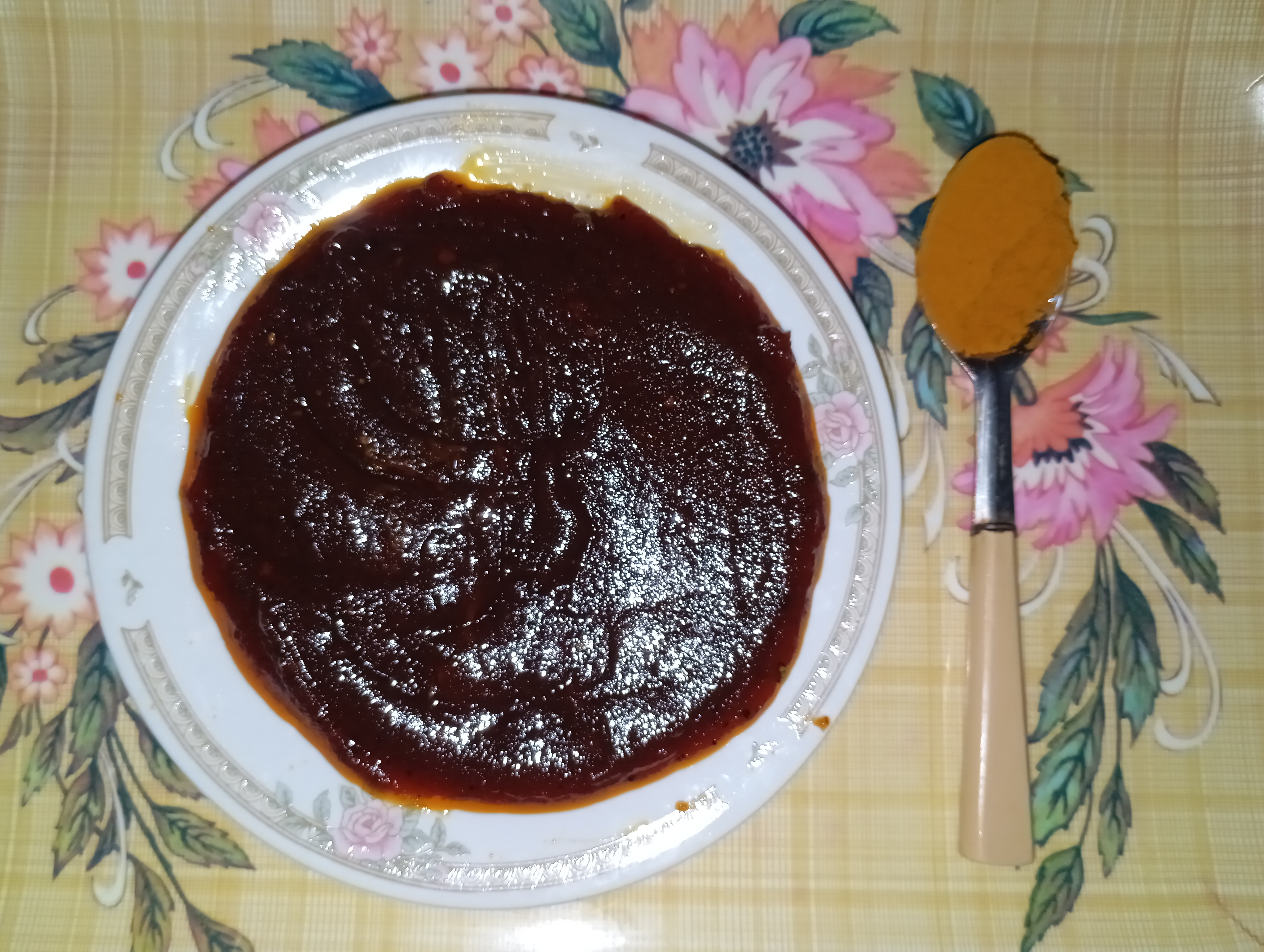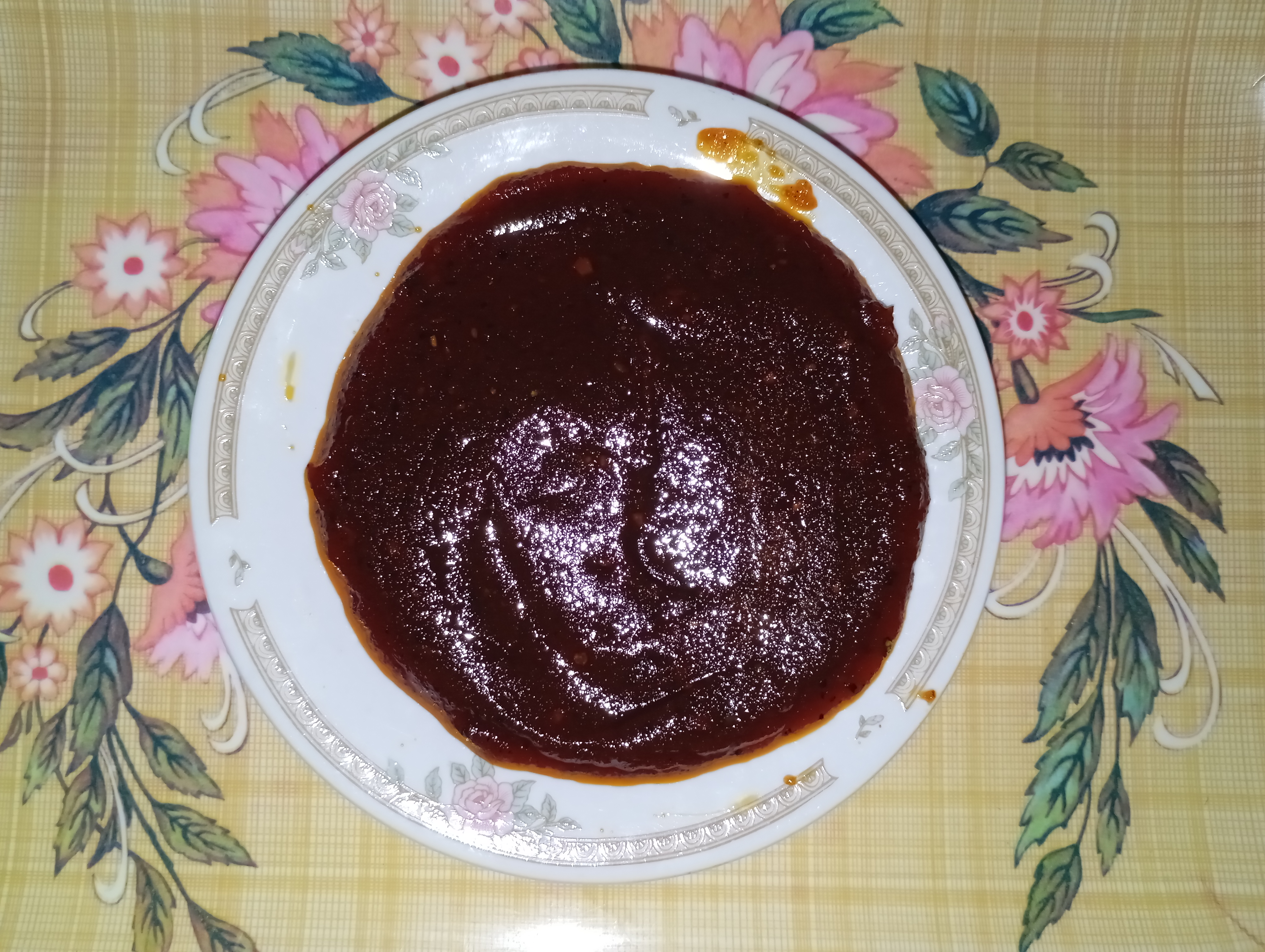 To show my last ketchup, I poured it into a clean glass Plate and beautified it with a little name reading: