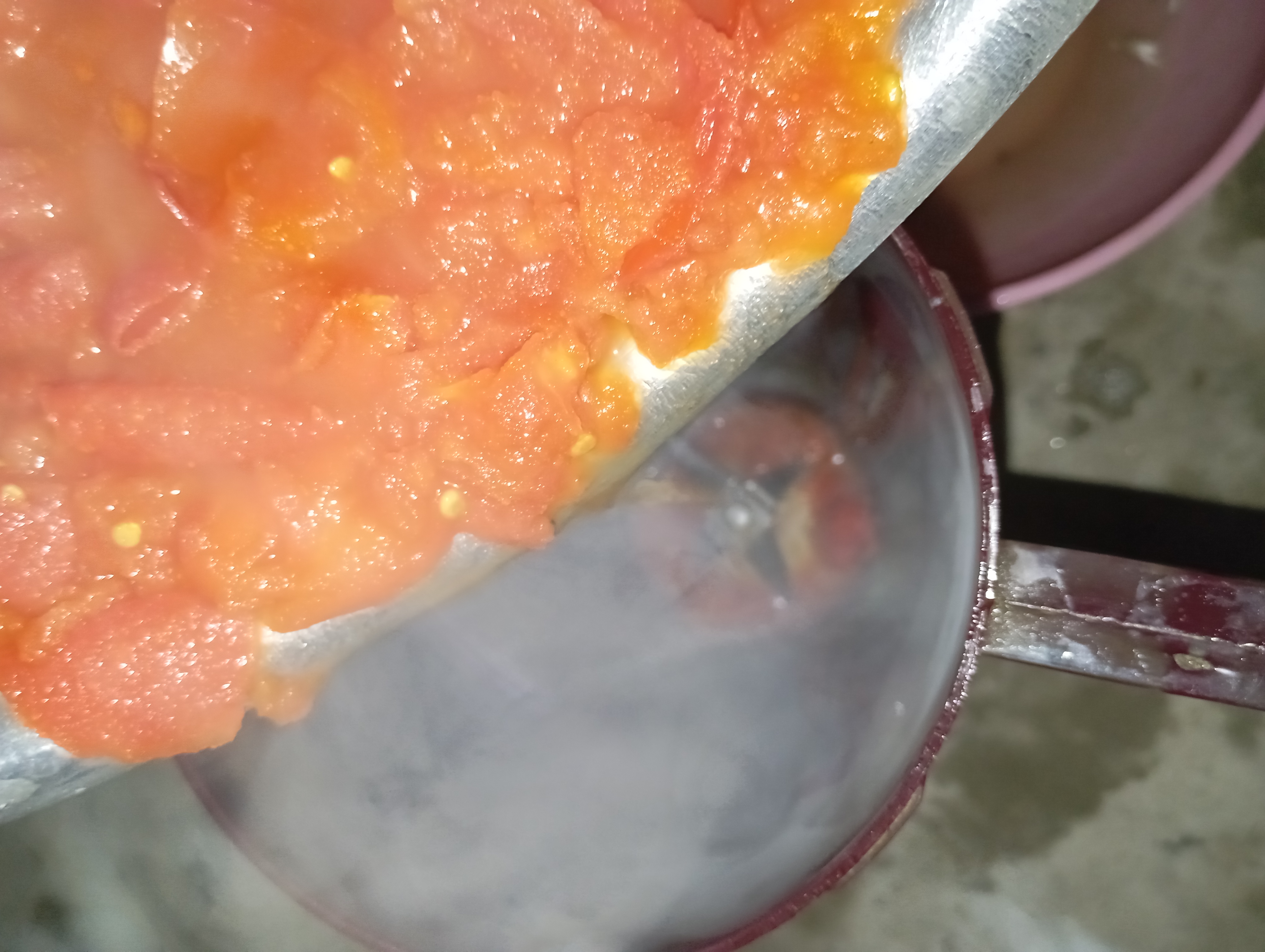After permitting the cooked tomatoes cold for a whereas, I swapped them into a blender and formed a smooth tomato paste.