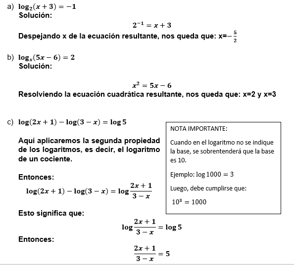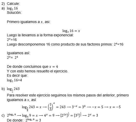 La forma de expresar formalmente un logaritmo, es la siguiente: