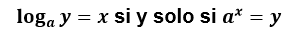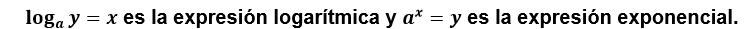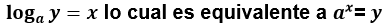 Donde 'a’ es la base, ‘x’ es el logaritmo e ‘y’ es el número al cual se le está buscando el logaritmo.