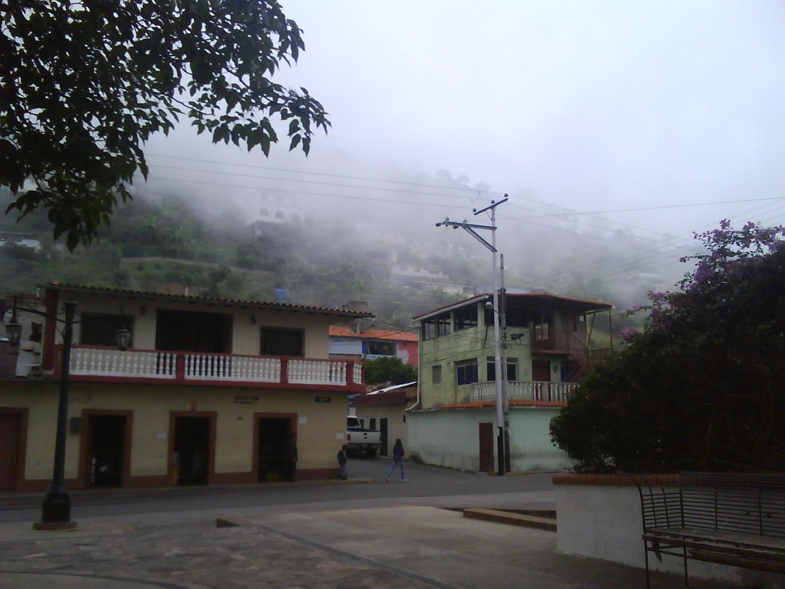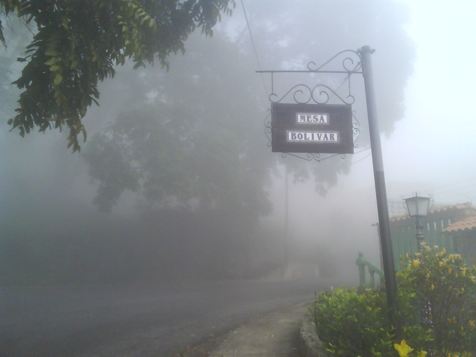 Mesa Bolívar es un pueblo que está en el Estado Mérida y es considerado un páramo porque está prácticamente en el pico de una montaña, para allá se debe ir sí o sí en un vehículo que aguante fuertes subidas y bajadas durante el trayecto. Al llegar a Mesa lo primero que vez, antes de subir al pueblo como tal, es la cancha donde juegan los muchachos, si sigues un poco más adelante por la empinada subida podrás encontrar una especie de puente, unas escaleras y una curva por la carretera, yo decidí subir las escaleras. Poco a poco, mientras la niebla me lo permitía, iba viendo sus calles y así fui llegando a la Plaza Bolívar la cual tiene un hermoso Araguaney, autóctono de nuestro país, y hay varios en toda la plaza, es hermoso ver cómo decoran la plaza, decoran artísticamente este día gris y nublado.