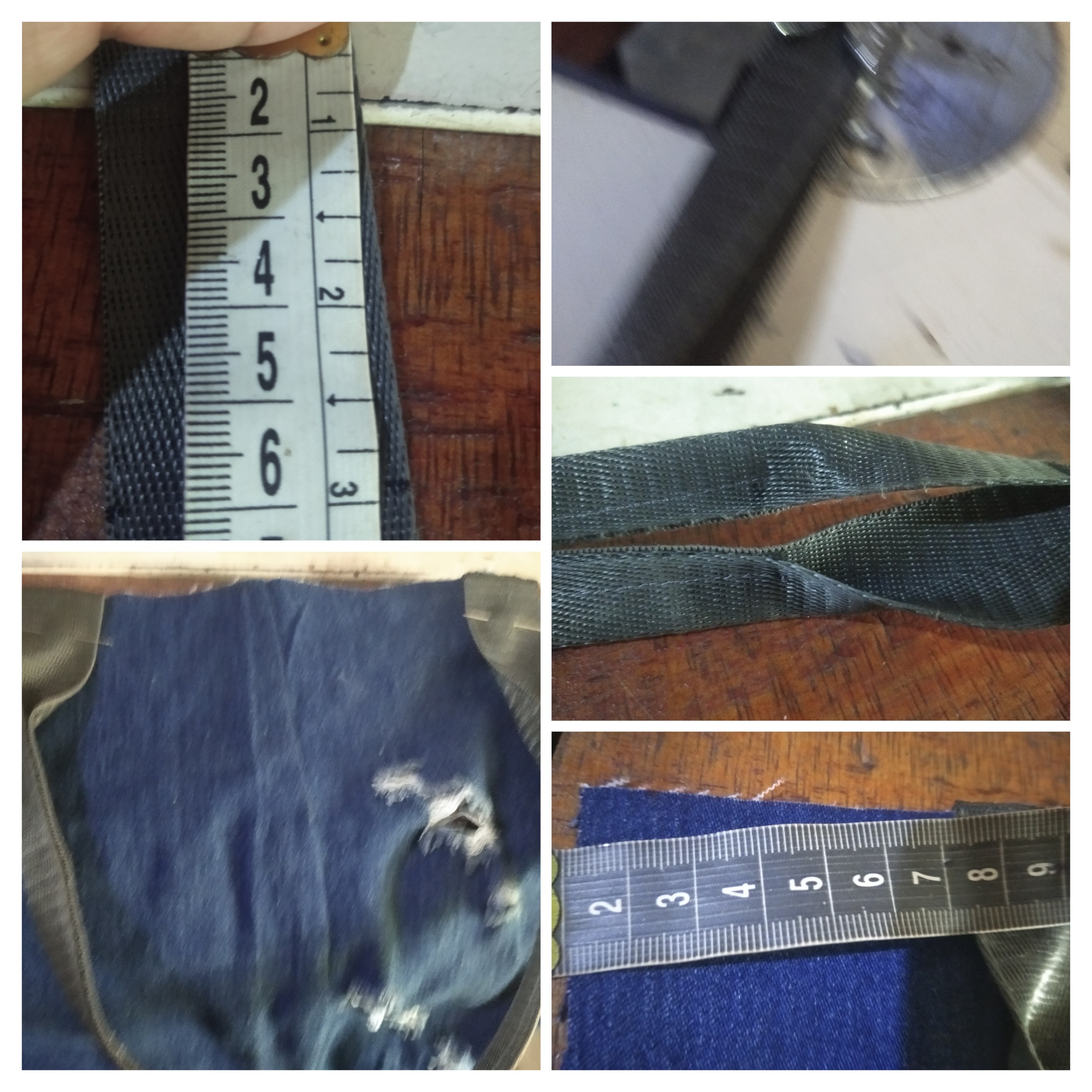 Iniciamos cortando dos retazos de tela de 30 cm de ancho por 70 cm de largo, en ambas telas tanto en la tela de retazo de jean como en la tela de forro, también vamos a utilizar 2 tiras de 20 cm cada una de las cinta sintética, luego con la tela doblada la mitad es decir a 35 cm en las esquinas inferiores vamos a realizar un recorte de 5 x 6 cm en ambas piezas de la tela en cada esquina en la parte inferior en ambas telas.