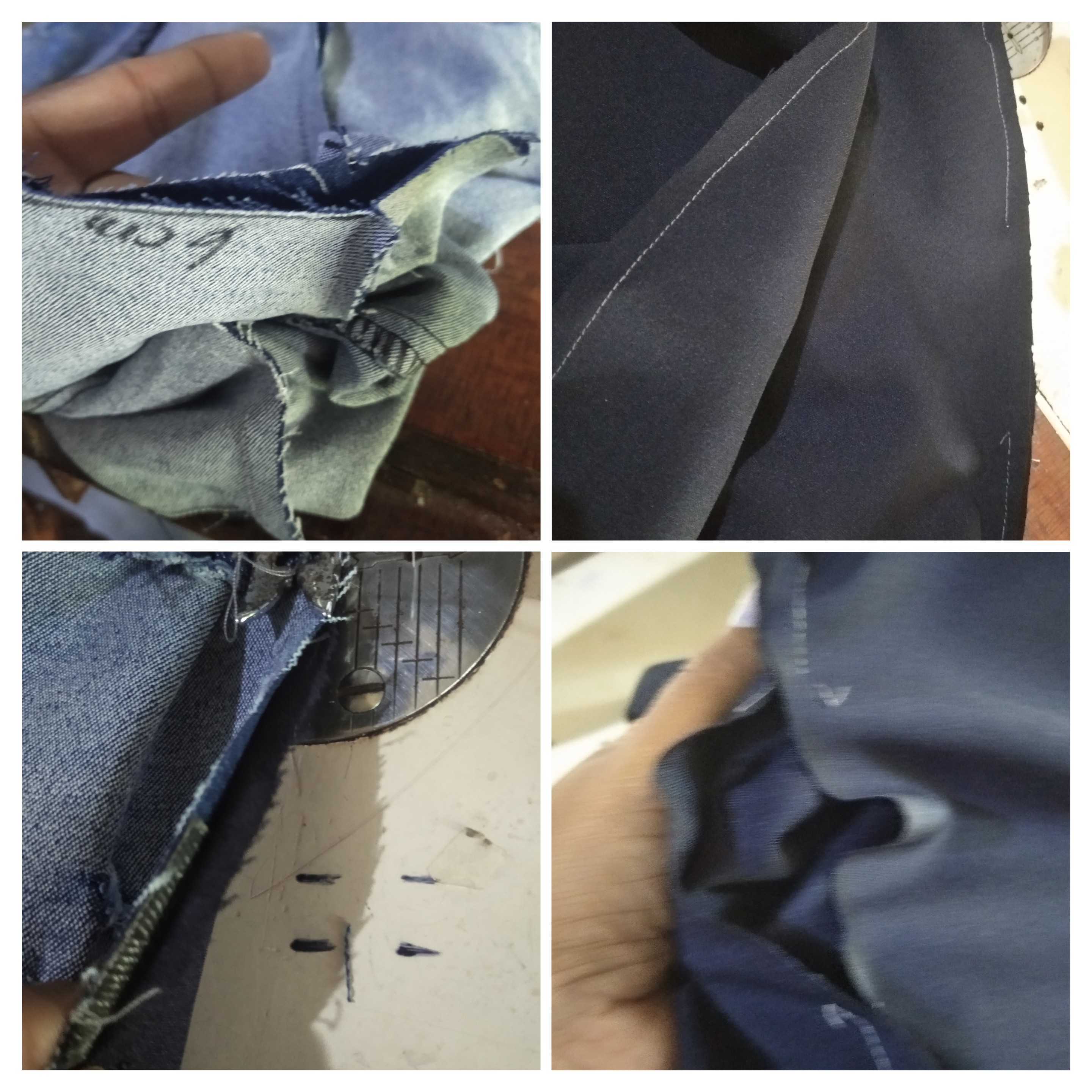 Ahora vamos a introducir el forro dentro de la pieza de pantalón que debe estar con el derecho hacia adentro y forro de la misma forma y cosemos la orilla o la boca de ambas piezas uniendo muy bien ambas piezas y haciendo remate en la parte donde fijamos las asas del mismo.