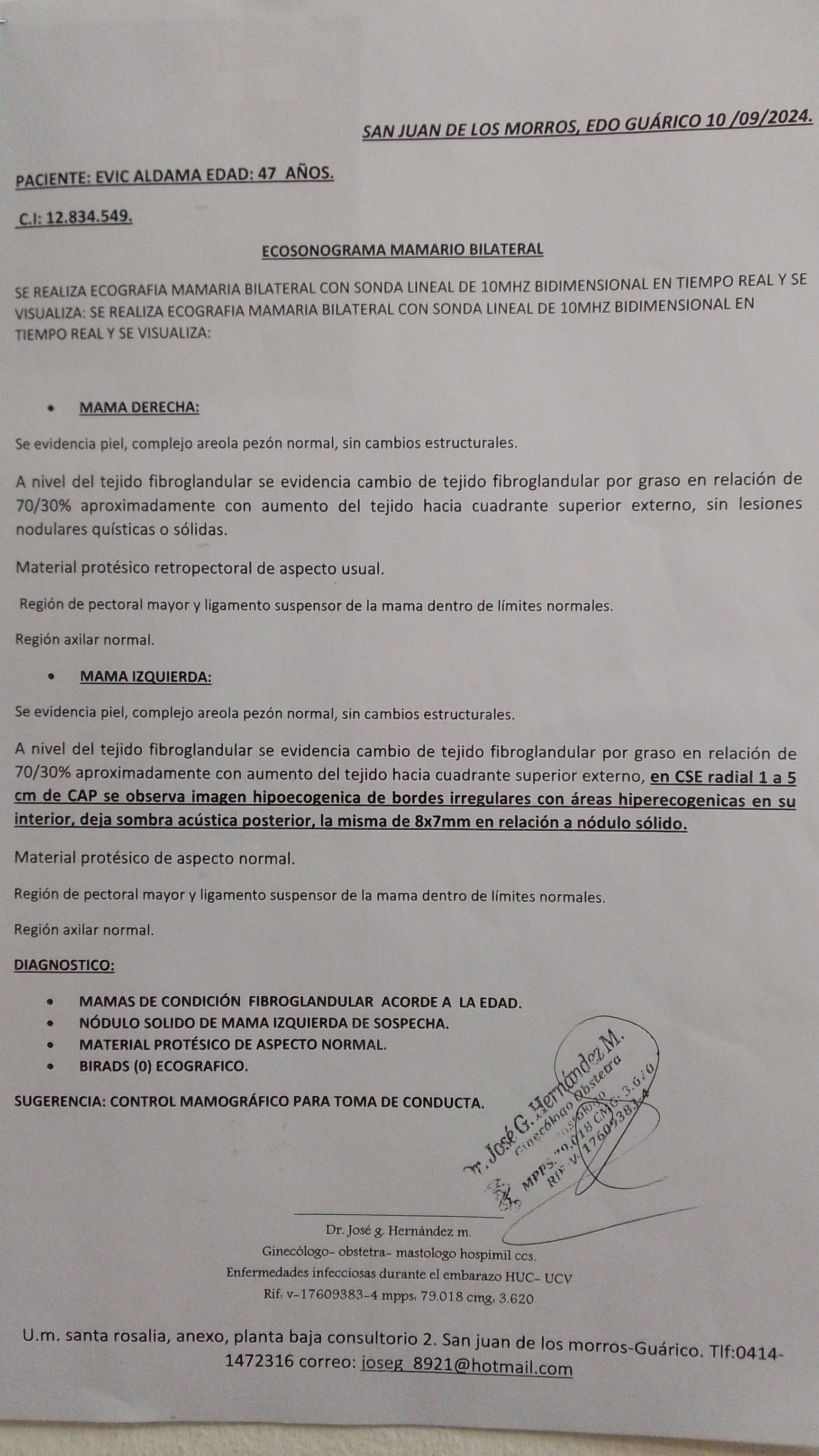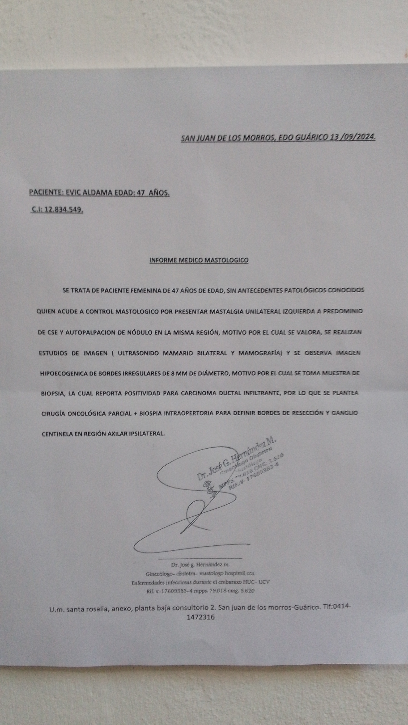 El martes 10 de septiembre con los 40$,decidí asistir a la consulta privada con el Dr José Gregorio Hernández en la clínica "Santa Rosalía" en San Juan de los morros, Estado Guárico. Quien me hizo un examen físico y repitió el eco.