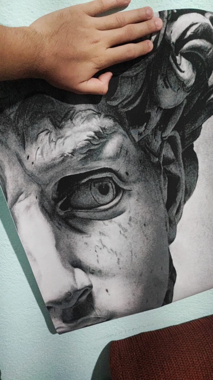 The material on which the image is printed is a canvas, I was very surprised by the quality of the image and my favorite is this one where "The David" has his eye open. It is an impressive sculpture and its meaning is even more so.