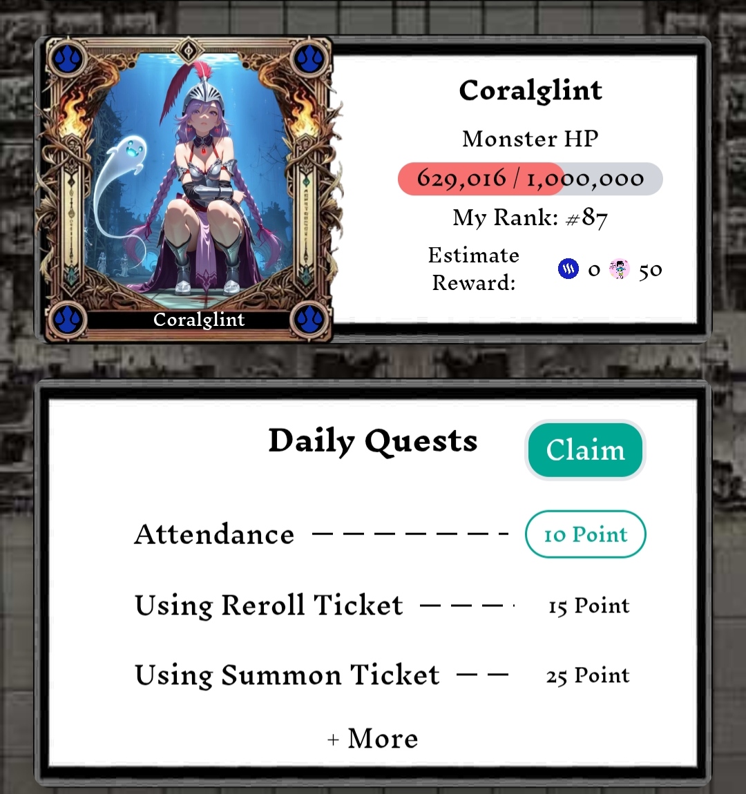 Además, probé algunos programas dentro del juego y fui a la opción de la tabla de clasificación en el lado derecho, donde vi la lista de los mejores jugadores. Allí, los que estaban del primero al cuarto puesto recibían grandes premios, los que estaban del quinto al vigésimo recibían premios atractivos y los que estaban por debajo no recibían ningún premio. Después, salí de allí, ataqué al monstruo y regresé a la pantalla de inicio, donde recogí algunos puntos.