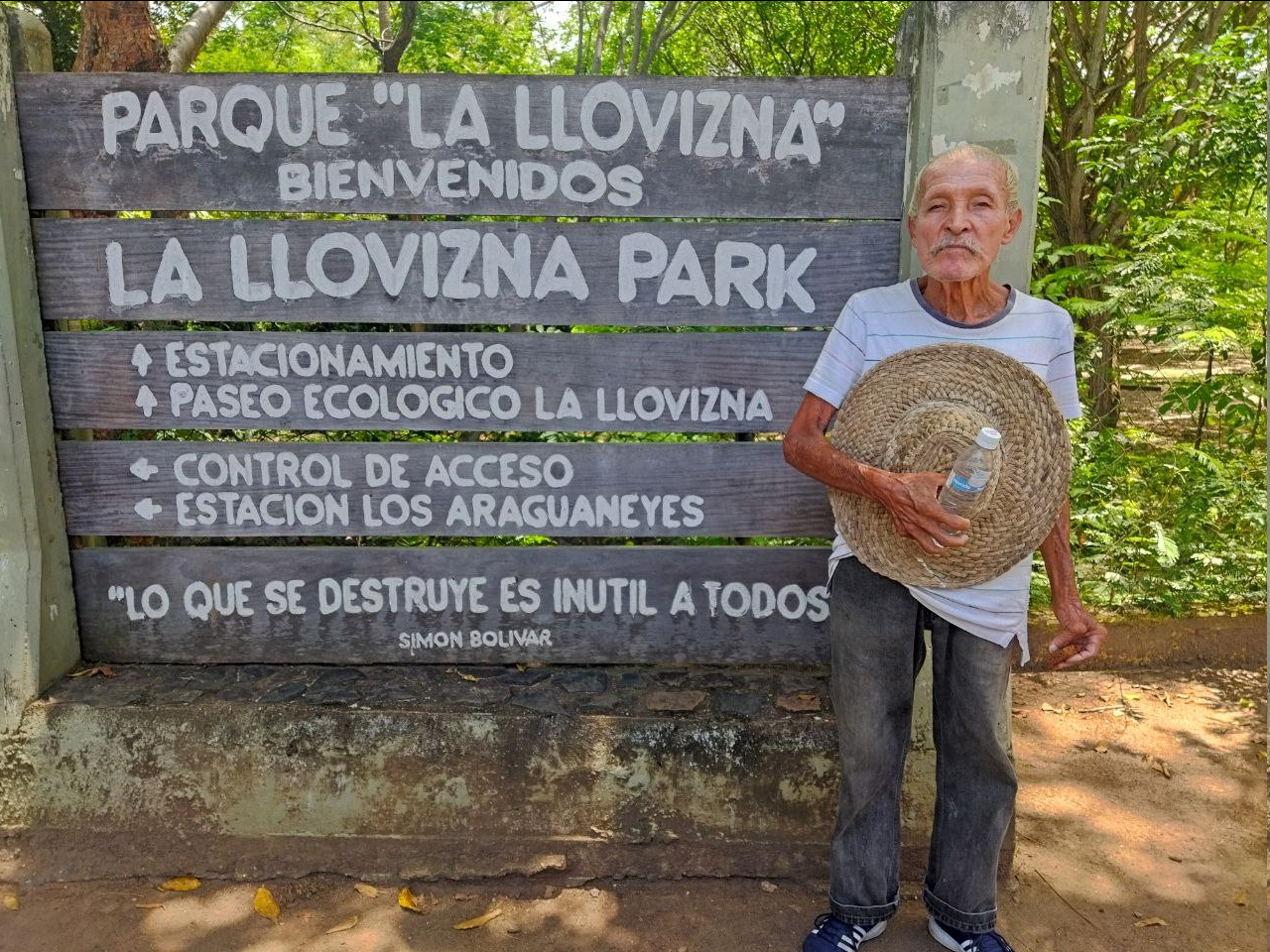 Mi padre en la entrada del Parque La Llovizna.