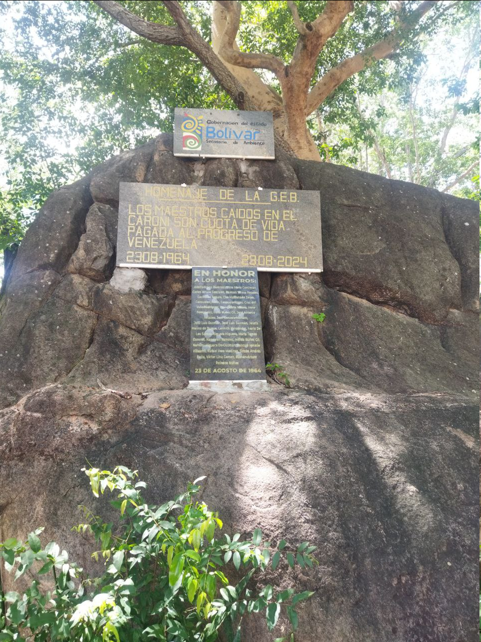 Hace años ocurrió un accidente en ese parque y le hicieron un monumento en estas piedras, se dice que eran unos maestros que estaban de excursión y cayeron por el paso del puente colgante y aquí su detalle en su memoria, una lástima y no solo ellos, a veces la gente se pierde o se desorienta por desconocimiento, por eso es bueno ir con alguien que conozca o con un guía turístico.