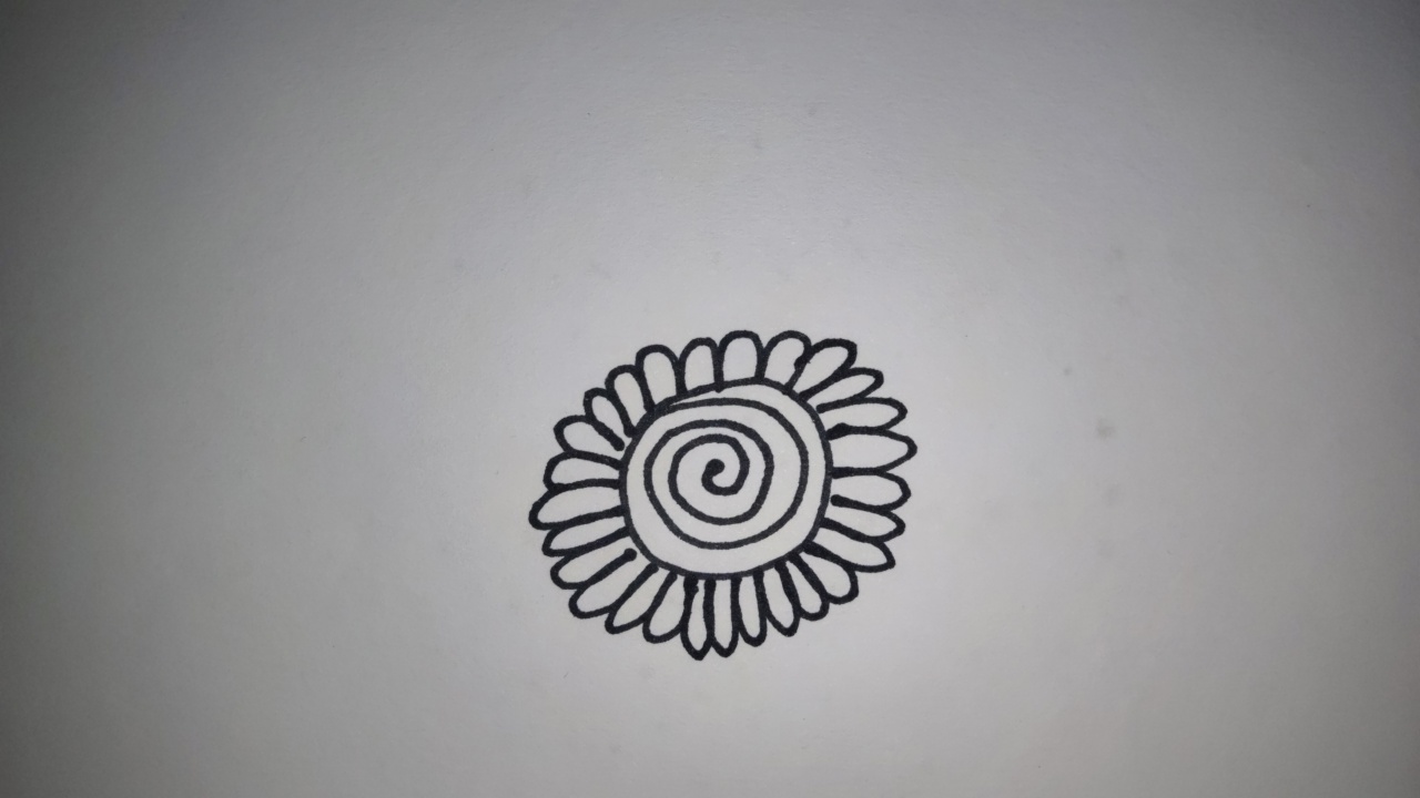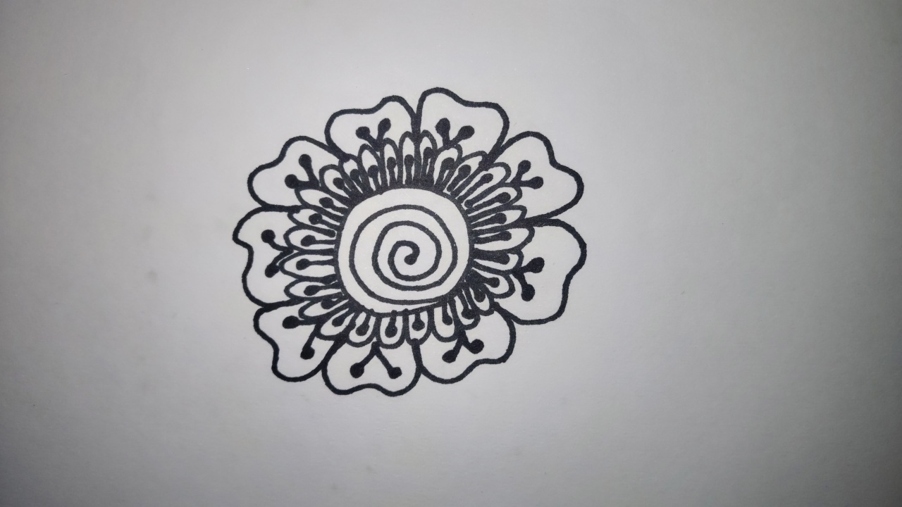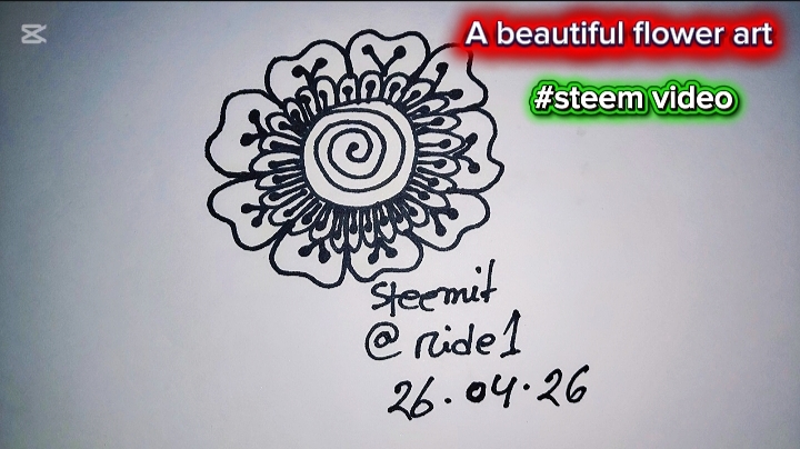 Para compartir el video de hoy, primero tomé un cuaderno y un bolígrafo. Luego, tomé el círculo en el centro de esta flor. De hecho, hice un diseño de flor redonda. Después, hice algunos diseños de flores encima del diseño de la flor. De manera similar, hice un diseño con pétalos grandes en la parte superior. Espero que les guste mucho el video de hoy. Cuídense mucho y manténganse sanos, gracias.