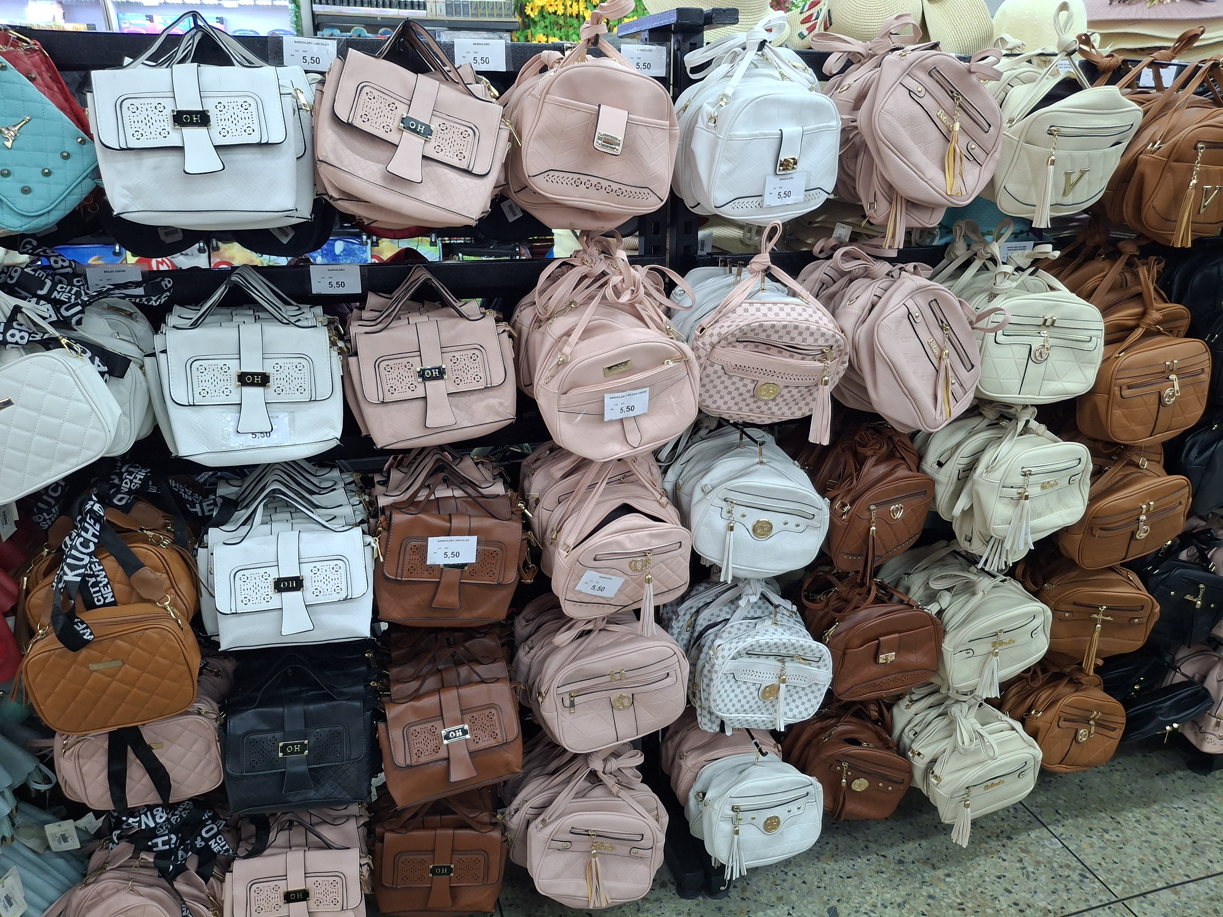 Hay un área de maquillaje especial para todas las chicas porque venden de todo, polvo compacto y suelto, rubor, brochas, bases, brillos, pintura de labios, iluminador, mascarilla, rimer, aparte que venden splash y perfumes, al igual que venden bolsos grandes y pequeños, morrales y monederos, aparte venden bolsos para llevar la comida al trabajo al igual que venden maletas y bolsos grandes viajeros.