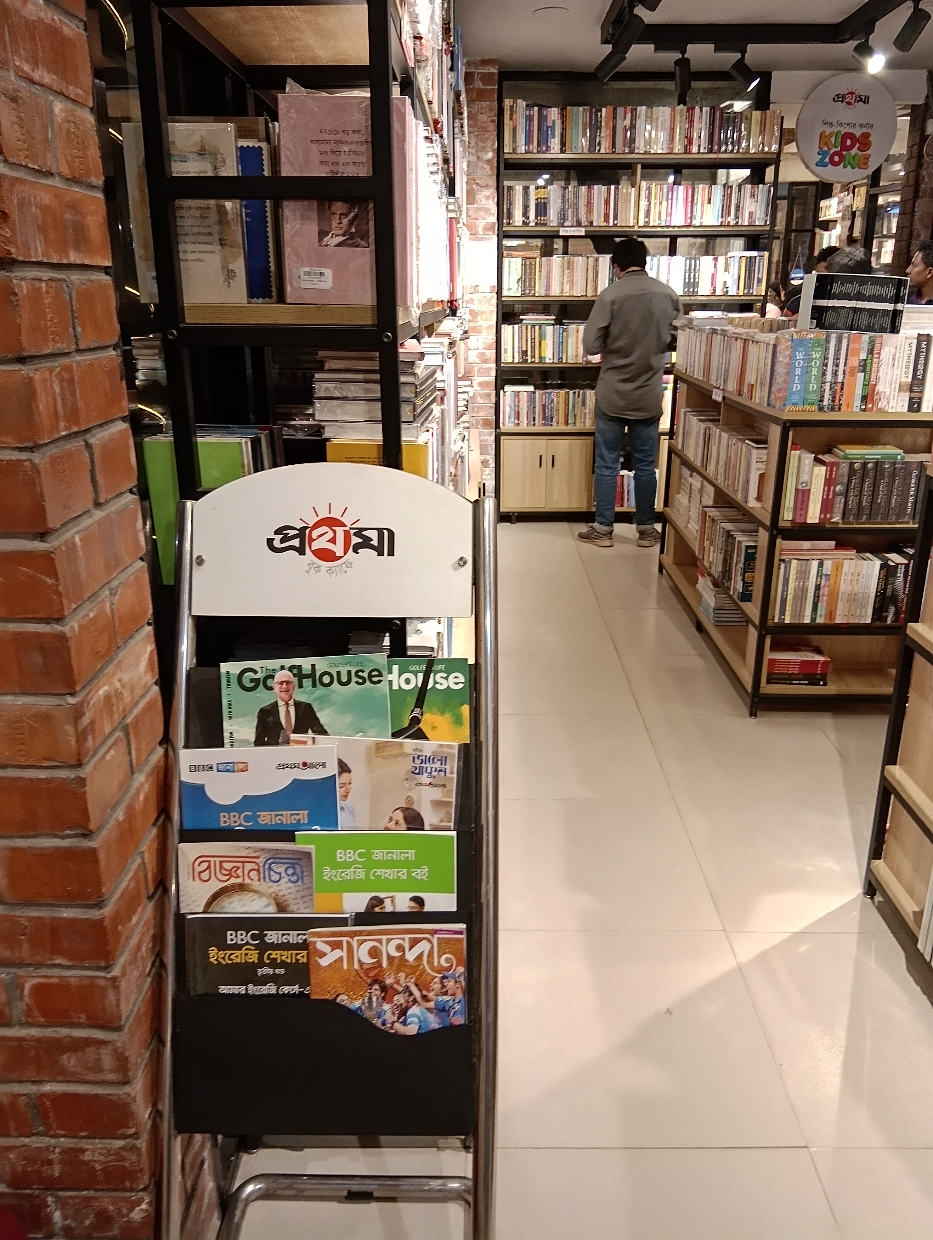 Ahora hablemos del logotipo de la librería. Cuando lo vi por primera vez, pensé que tenía alguna relación con Prothom Alo, porque el logotipo es bastante similar. Más tarde descubrí que Prothoma Prokashon es una editorial y que pertenece a Prothom Alo.