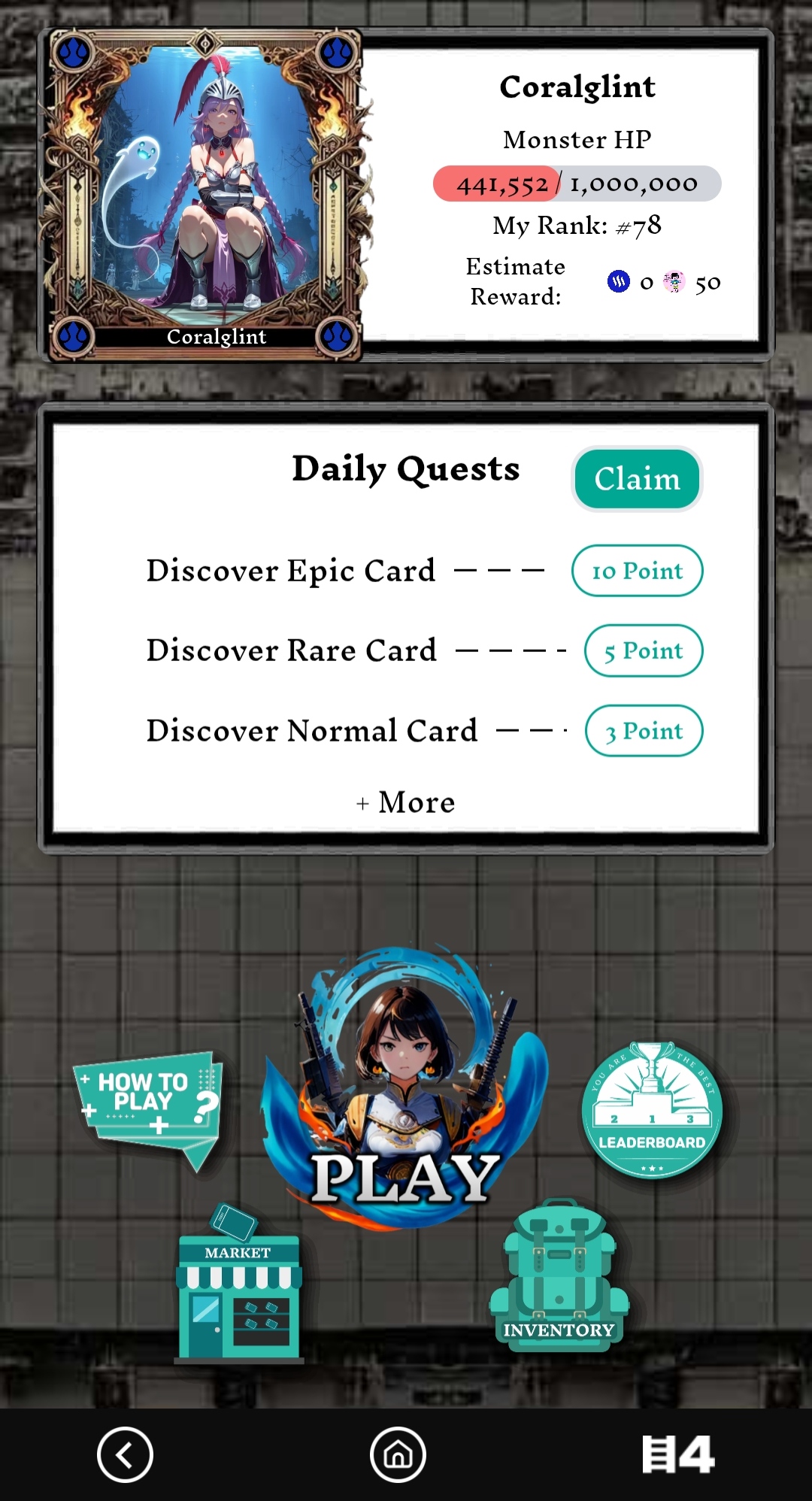 Hay un monstruo en este juego y entré con el objetivo de encontrar la manera de derrotarlo, pero hoy lo ataqué tres veces porque solo recibo tres créditos al día para atacar y, cuando se me acaban, tengo que conseguir más. De esta forma, pierdo la oportunidad de atacar al monstruo.